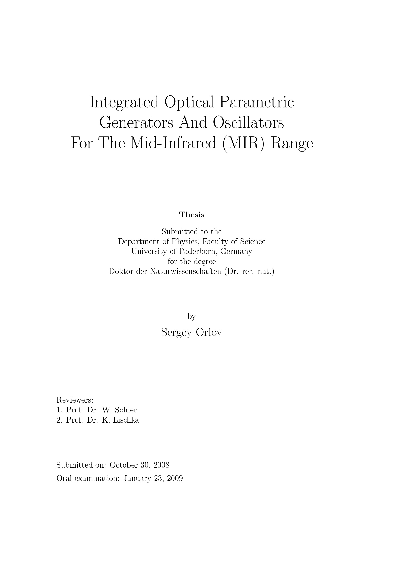 Integrated optical parametric generators and oscillators for the mid-infrared (MIR) range / Sergey Orlov