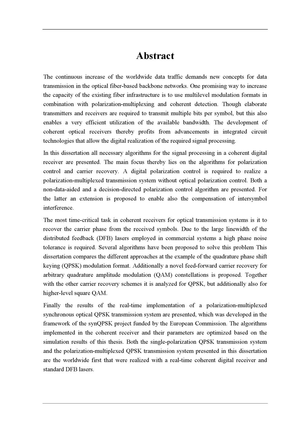 Development and real-time implementation of digital signal processing algorithms for coherent optical receivers / Timo Pfau