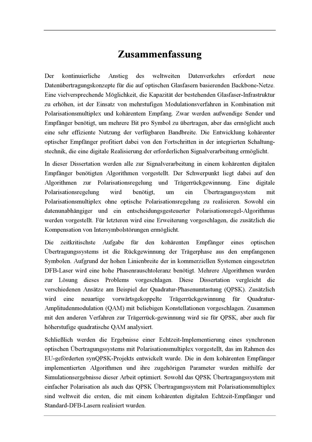 Development and real-time implementation of digital signal processing algorithms for coherent optical receivers / Timo Pfau