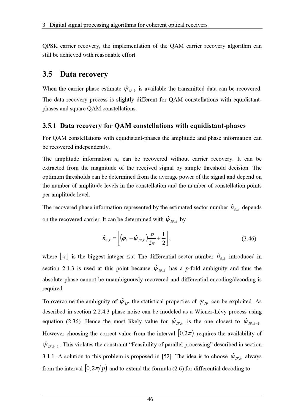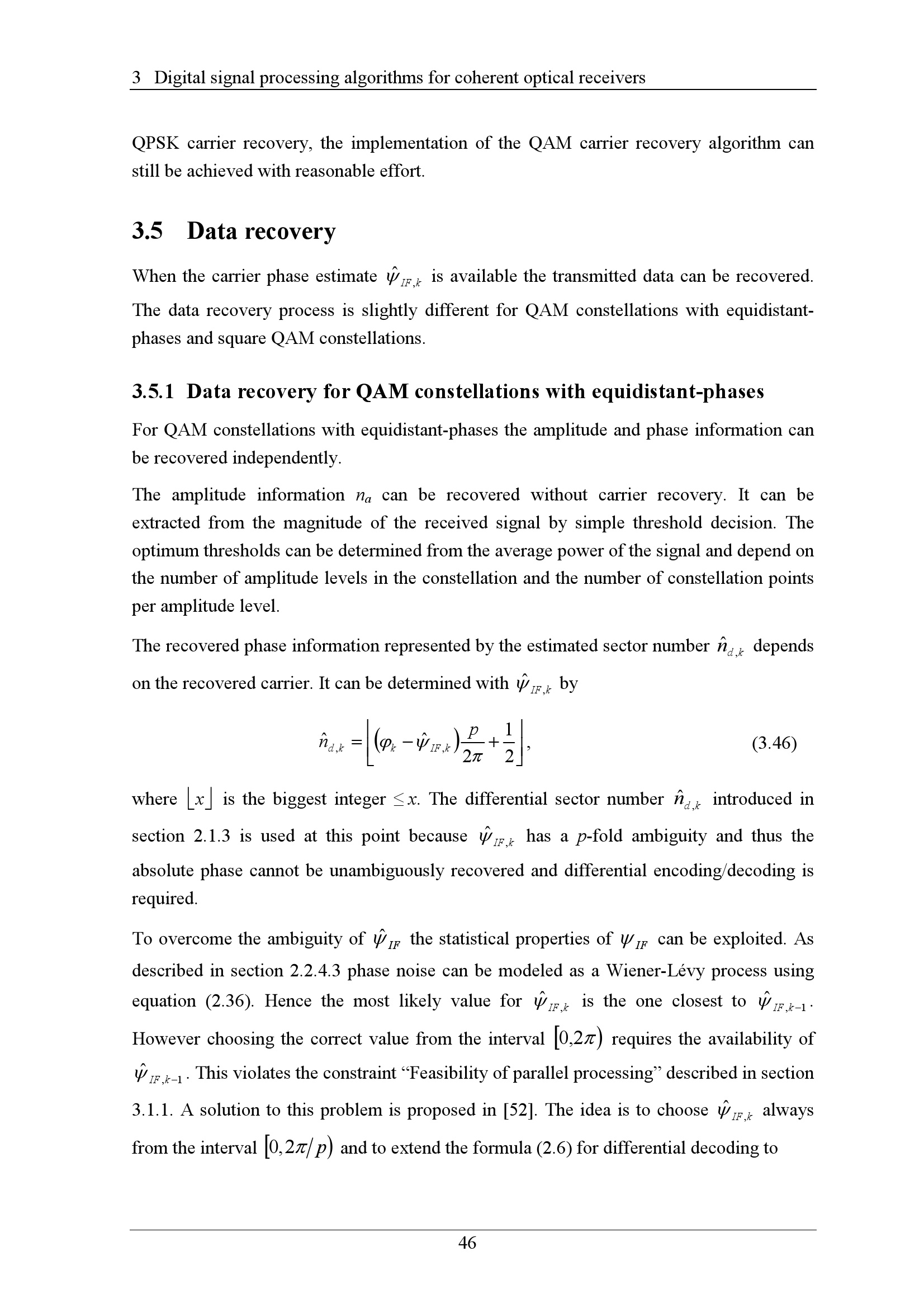 3.5.1 Data recovery for QAM constellations with equidistant-phases