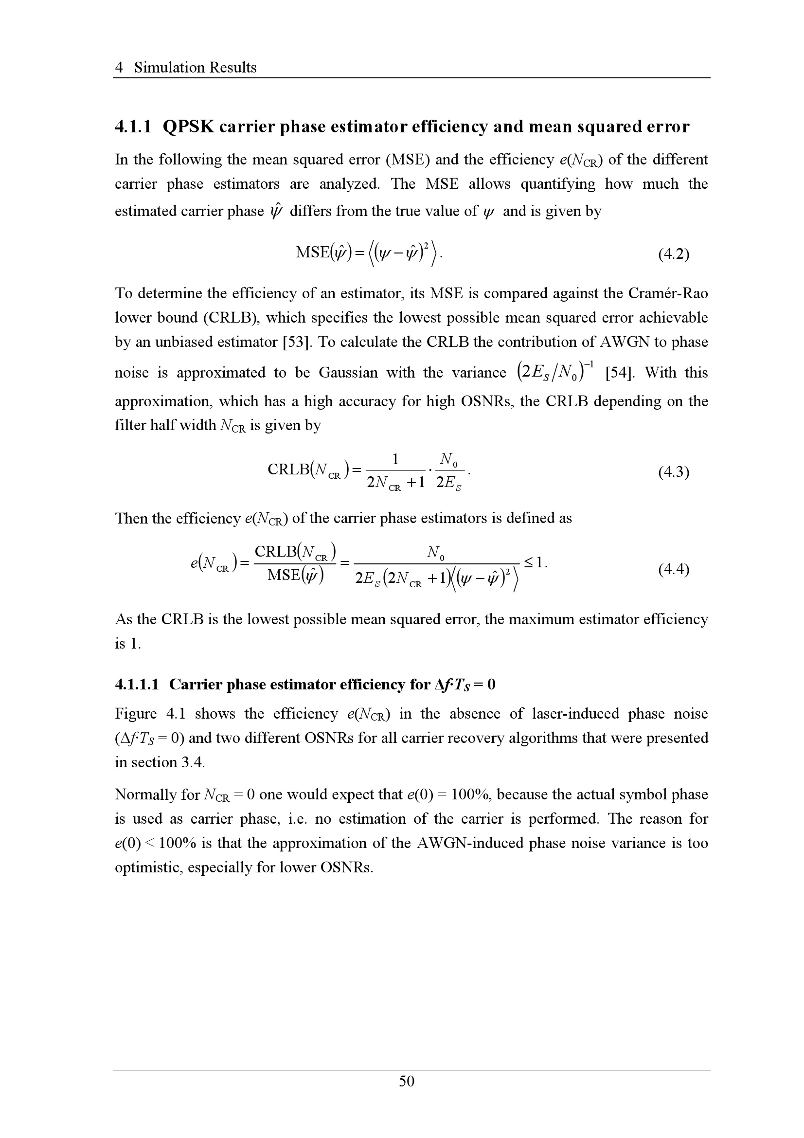 4.1.1 QPSK carrier phase estimator efficiency and mean squared error