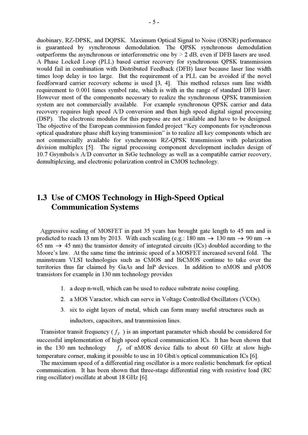 1.3 Use of CMOS Technology in High-Speed Optical Communication Systems