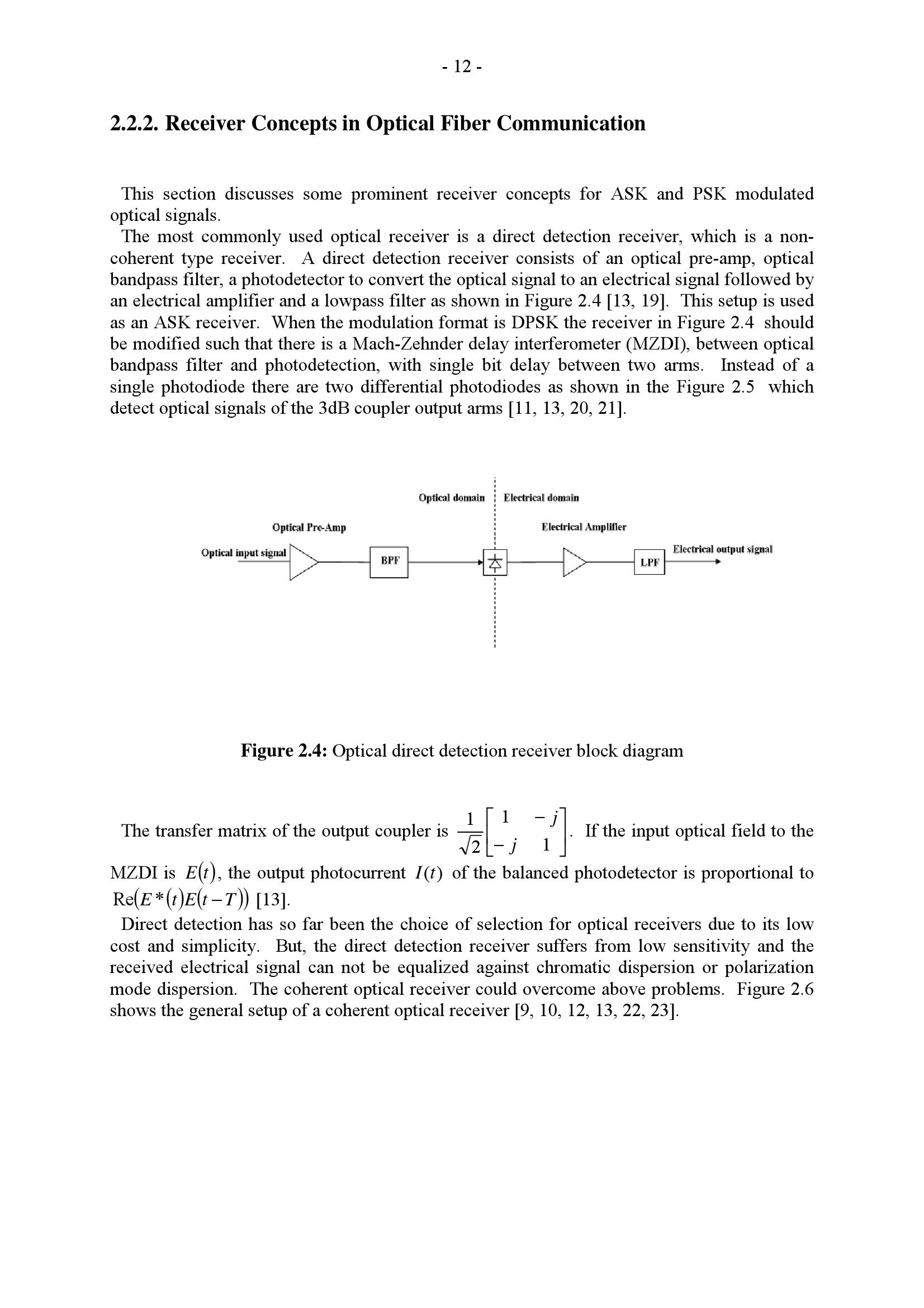 2.2.2. Receiver Concepts in Optical Fiber Communication