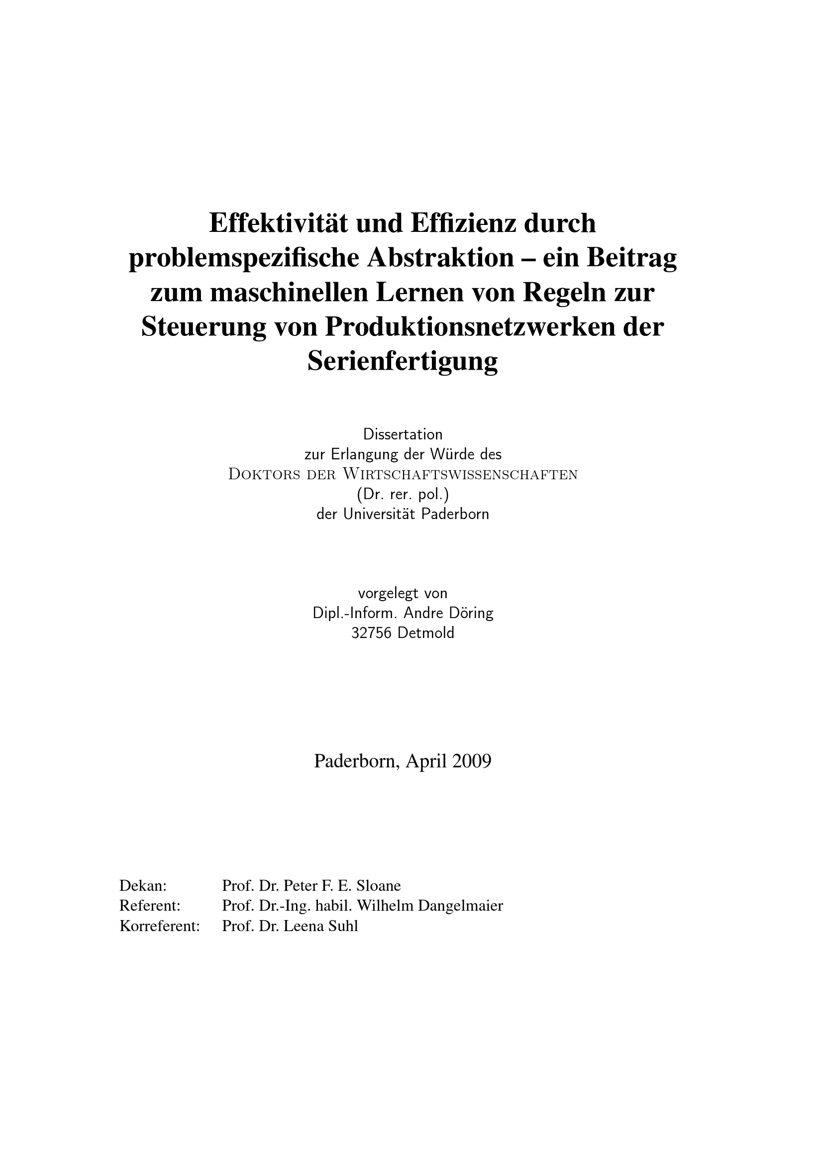 Effektivität und Effizienz durch problemspezifische Abstraktion : ein Beitrag zum maschinellen Lernen von Regeln zur Steuerung von Produktionsnetzwerken der Serienfertigung / Andre Döring