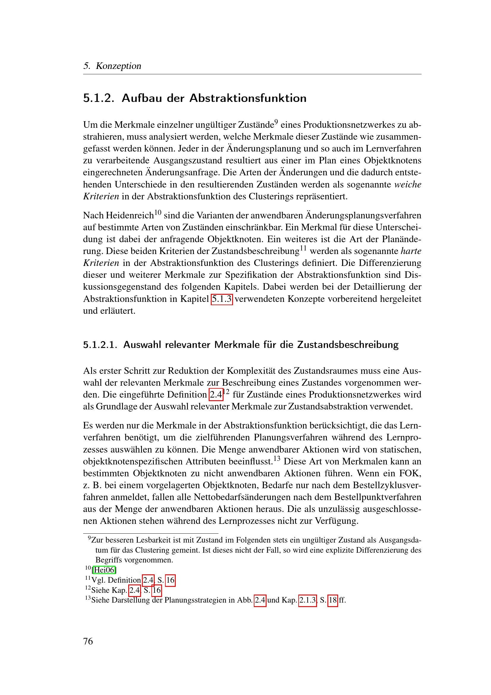 Auswahl relevanter Merkmale für die Zustandsbeschreibung