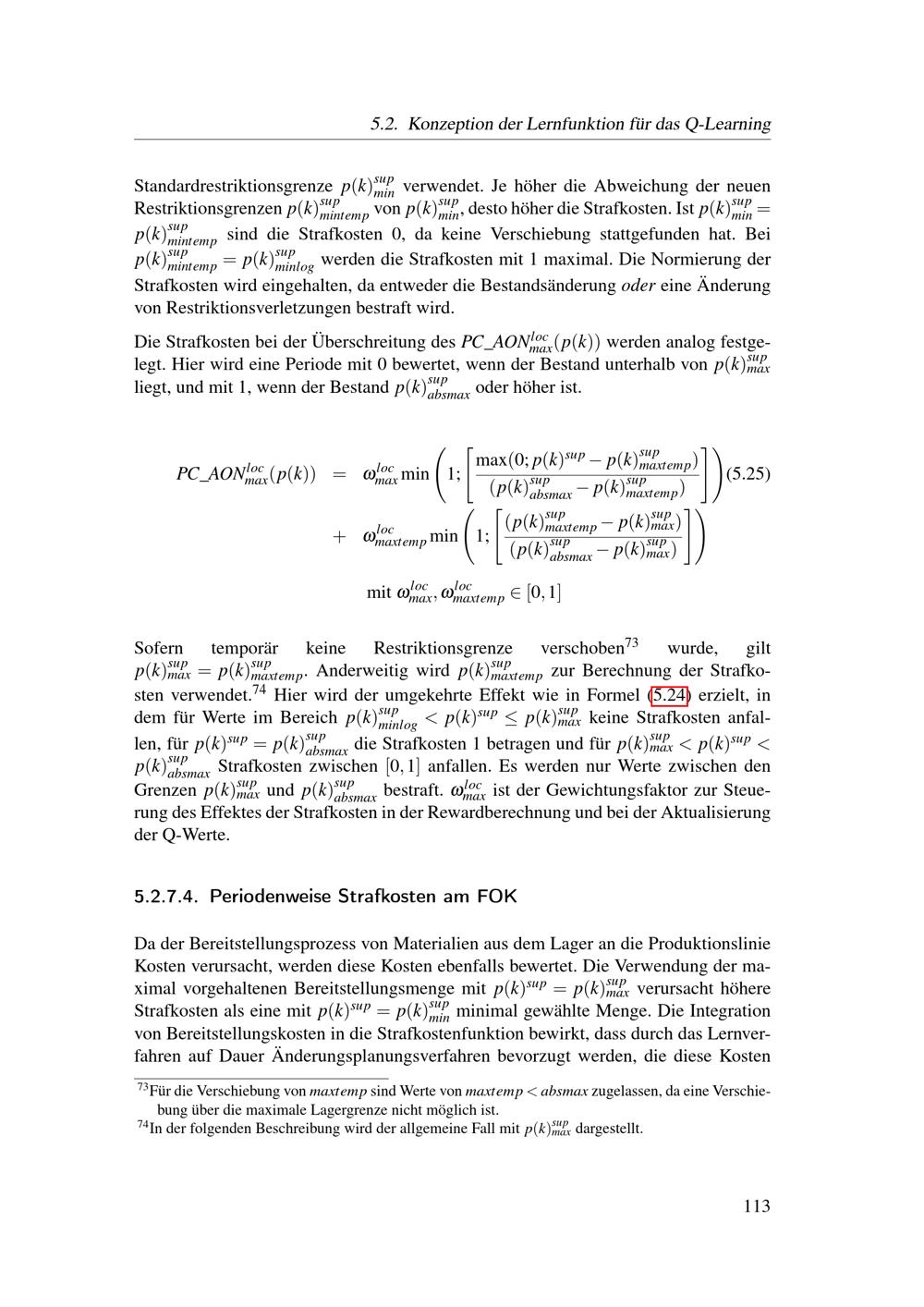 Konzeption der Lernfunktion für das Q-Learning