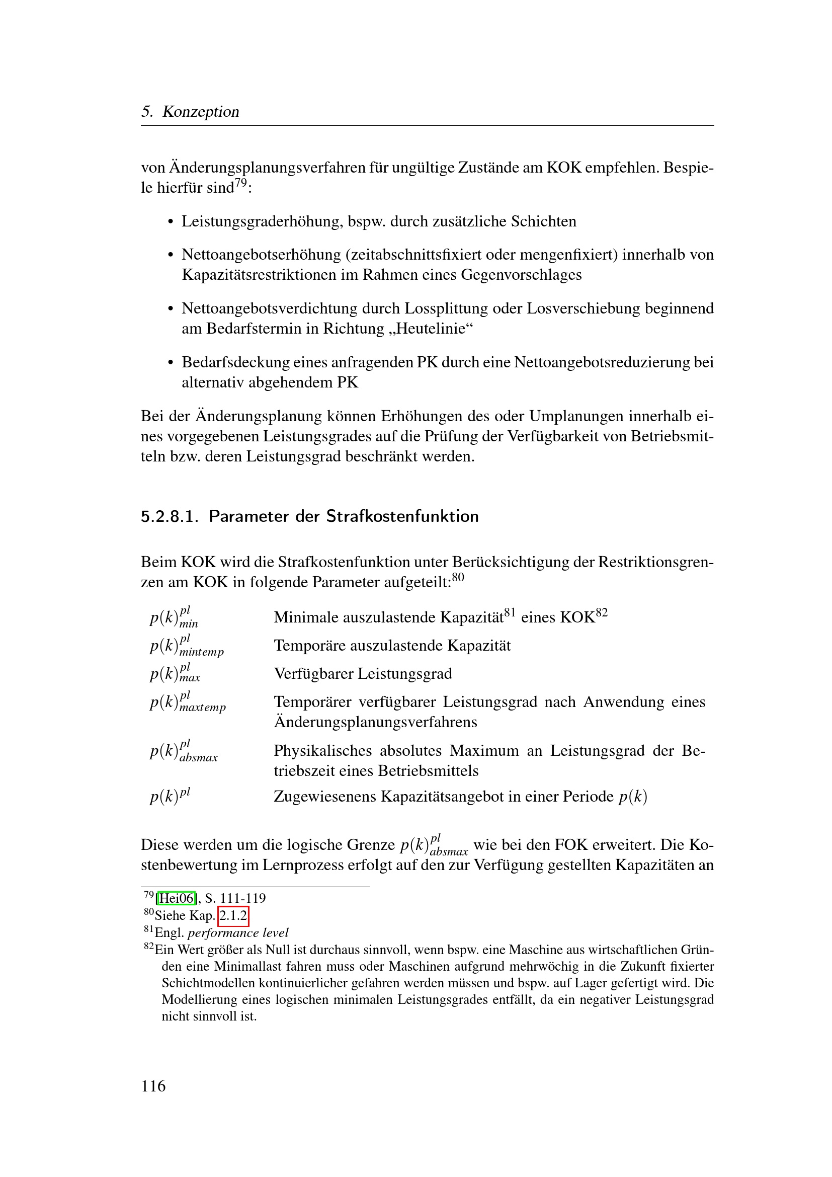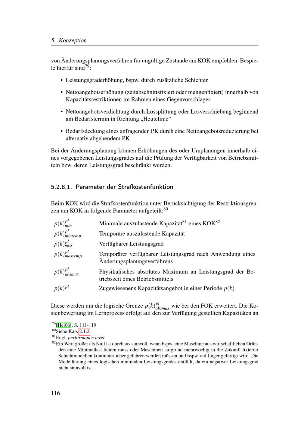 Betriebsmittelstrafkosten am Kapazitätsobjektknoten