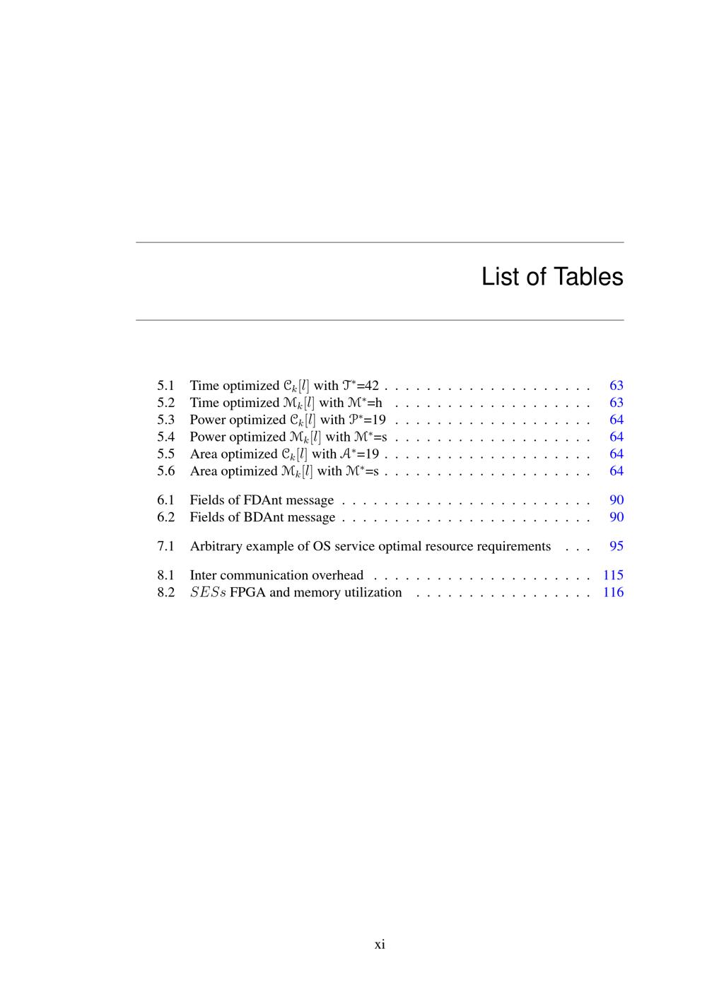 List of Tables