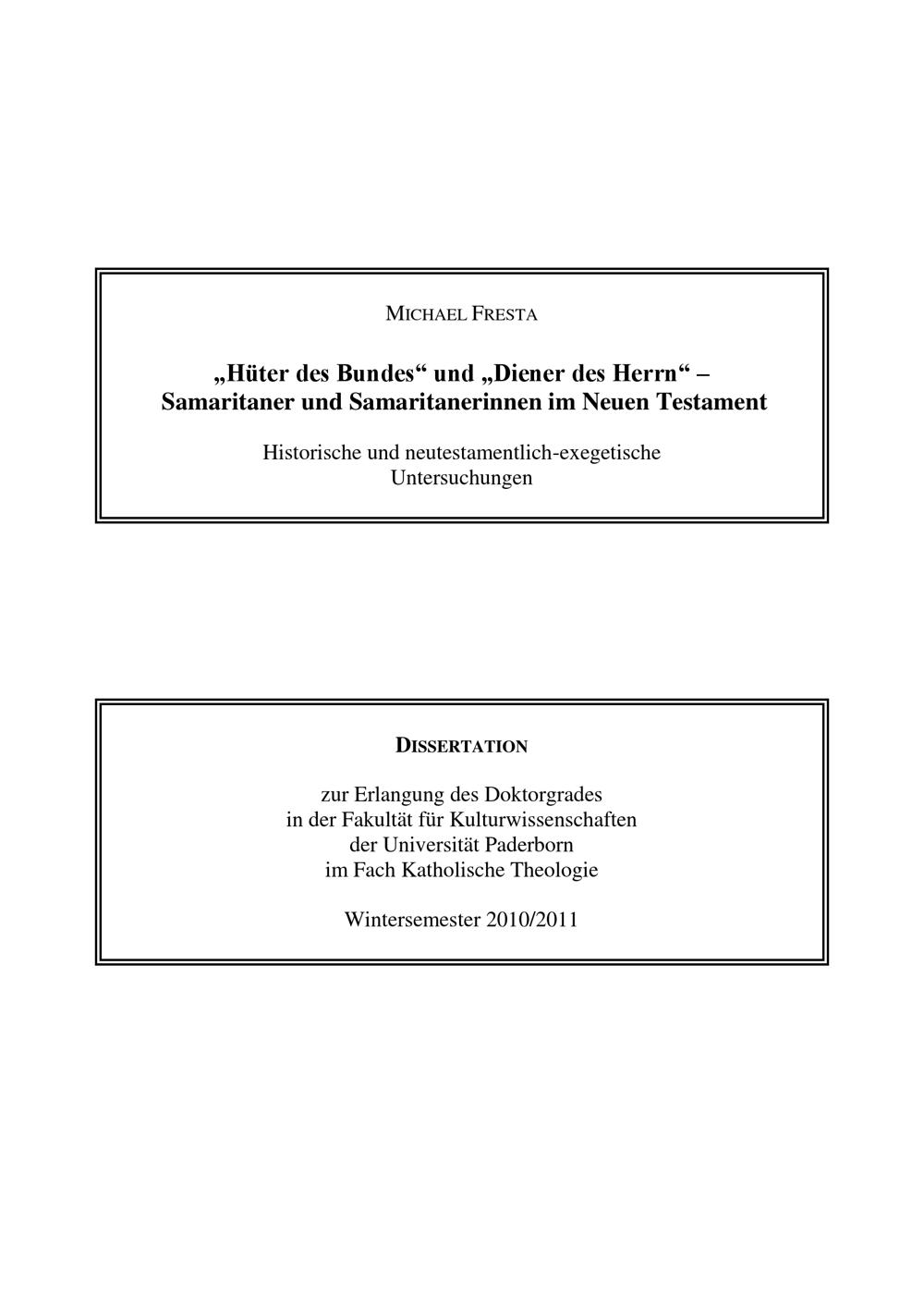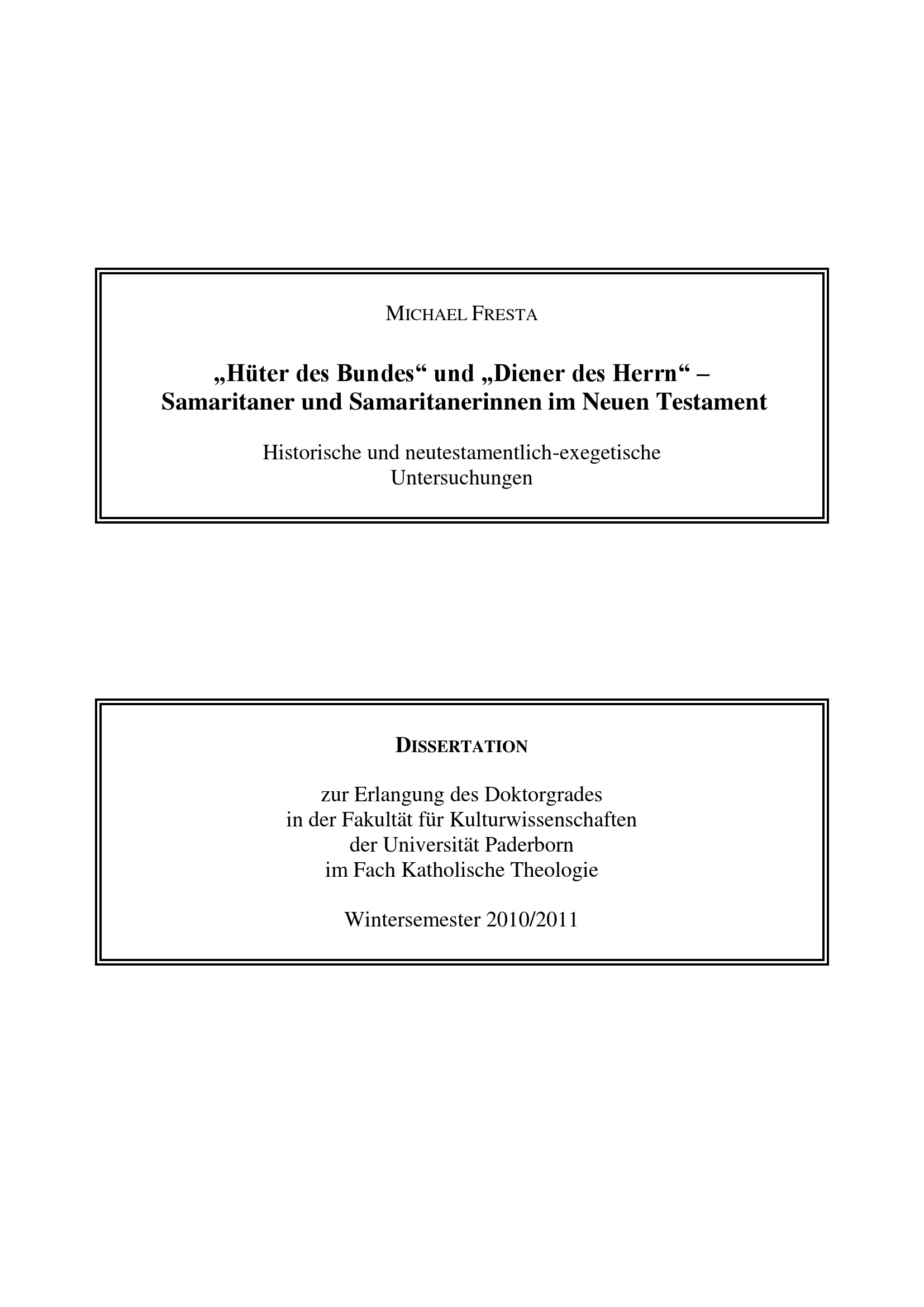 "Hüter des Bundes" und "Diener des Herrn" : Samaritaner und Samaritanerinnen im Neuen Testament ; historische und neutestamentlich-exegetische Untersuchungen