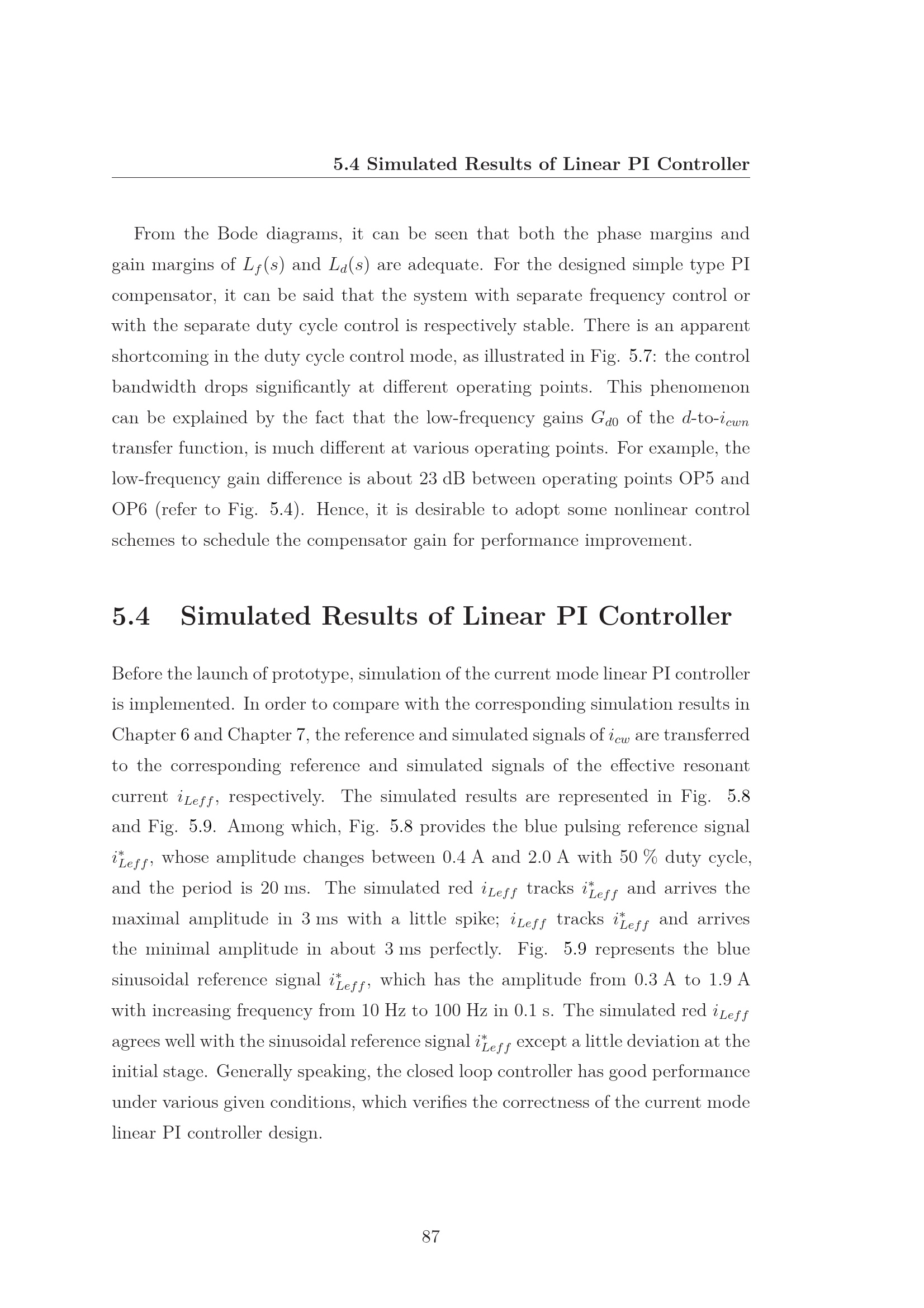 5.4 Simulated Results of Linear PI Controller