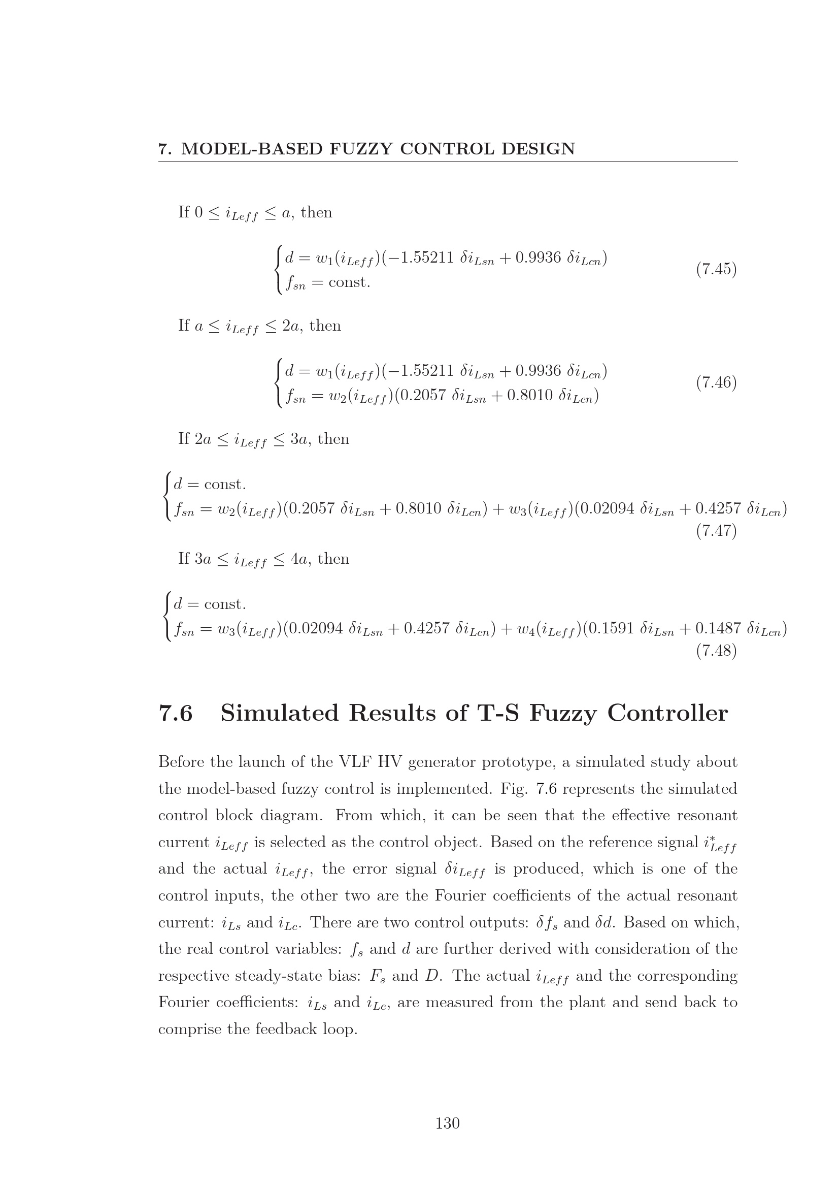 7.6 Simulated Results of T-S Fuzzy Controller