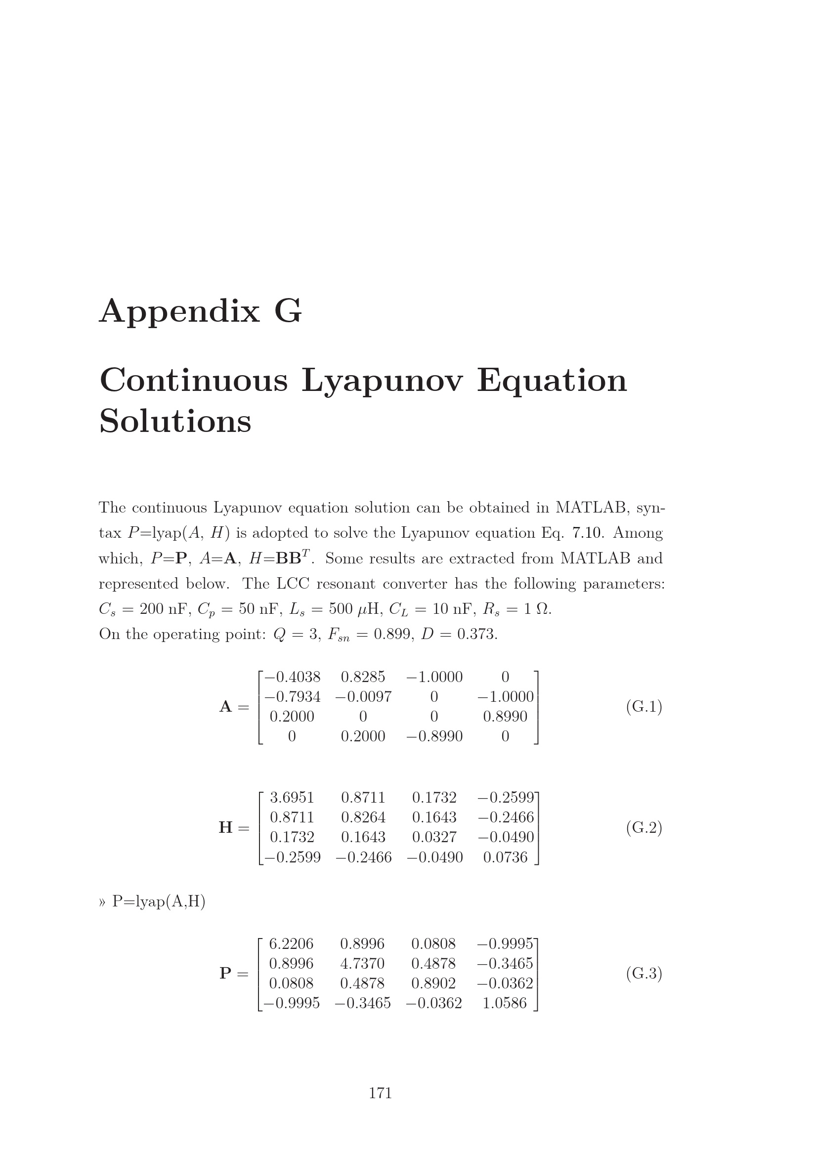 G Continuous Lyapunov Equation Solutions