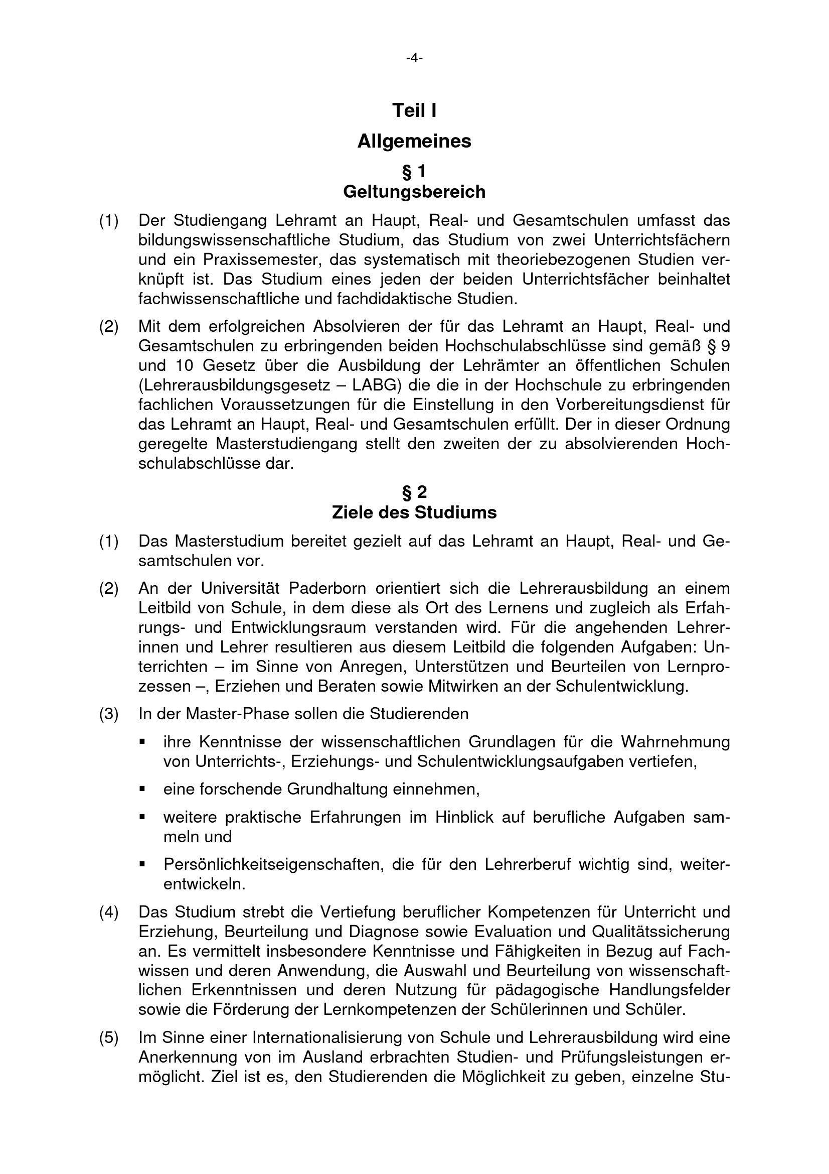 Allgemeine Bestimmungen der Prüfungsordnung für den Masterstudiengang Lehramt an Haupt-, Real- und Gesamtschulen an der Universität Paderborn : vom 14. März 2014
