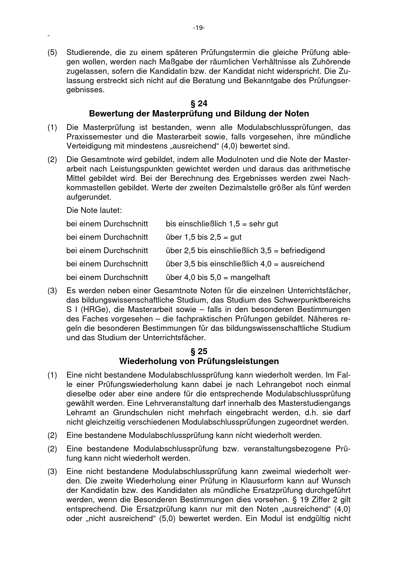 § 24 Bewertung der Masterprüfung und Bildung der Noten