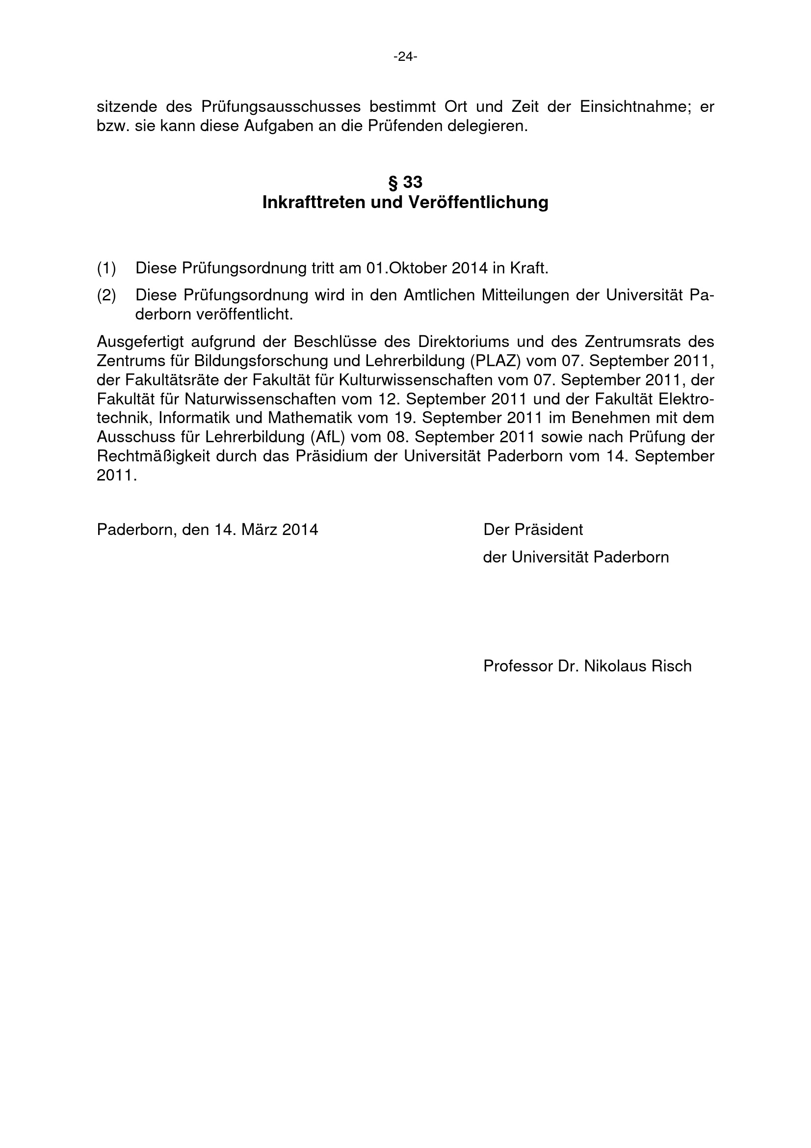 § 33 Inkrafttreten und Veröffentlichung