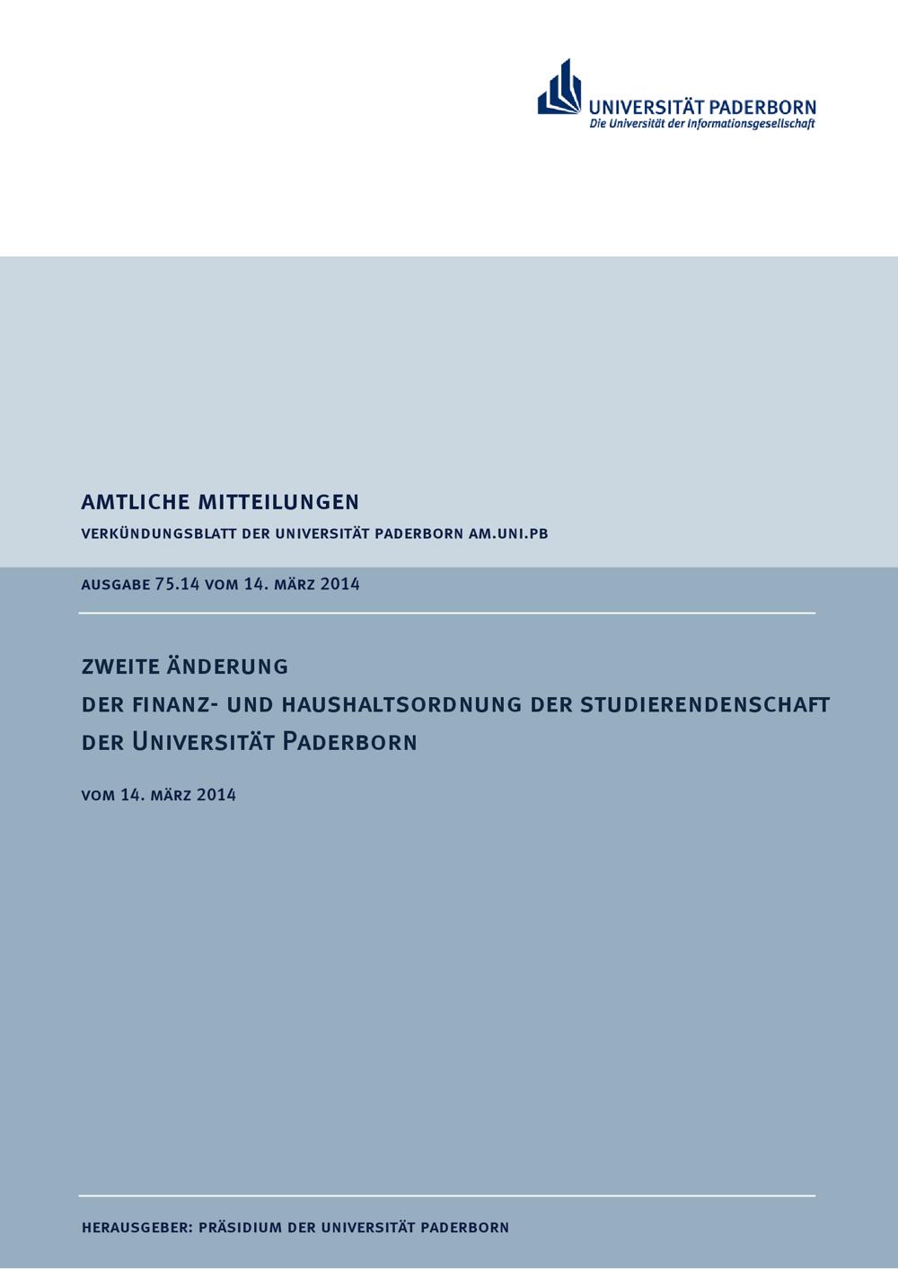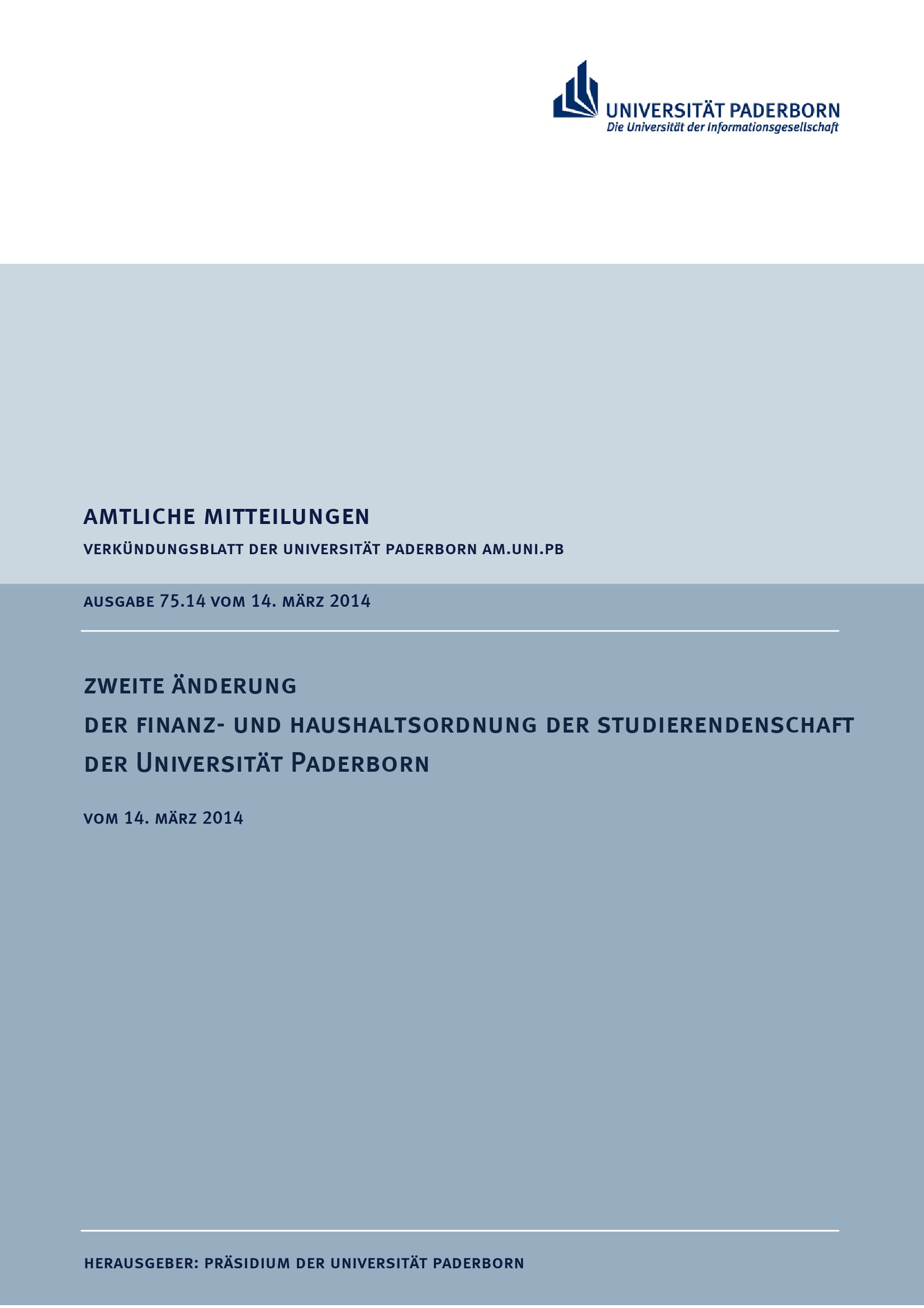 Zweite Änderung der Finanz- und Haushaltsordnung der Studierendenschaft der Universität Paderborn : vom 14. März 2014