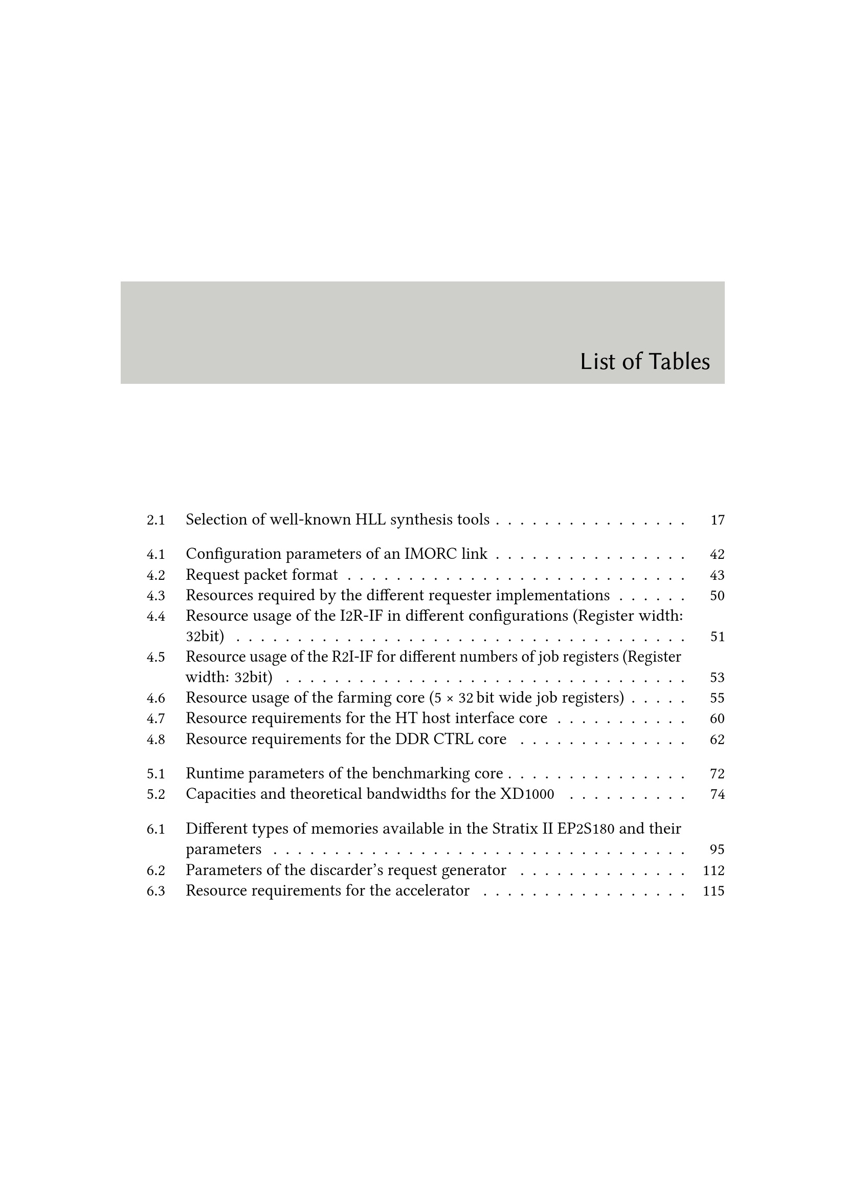 List of Tables