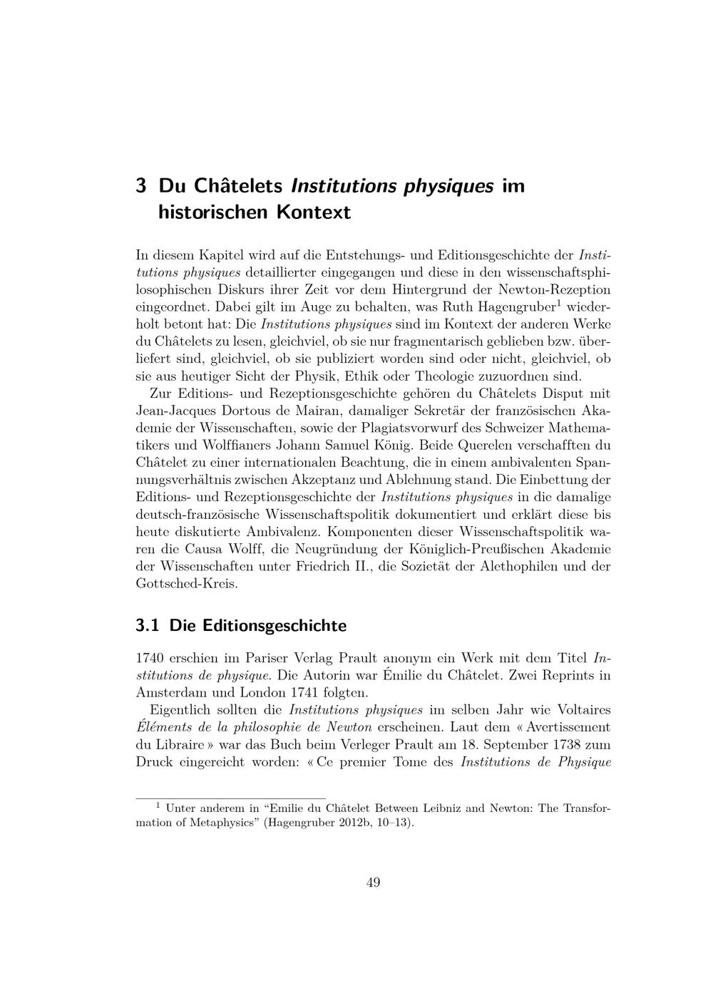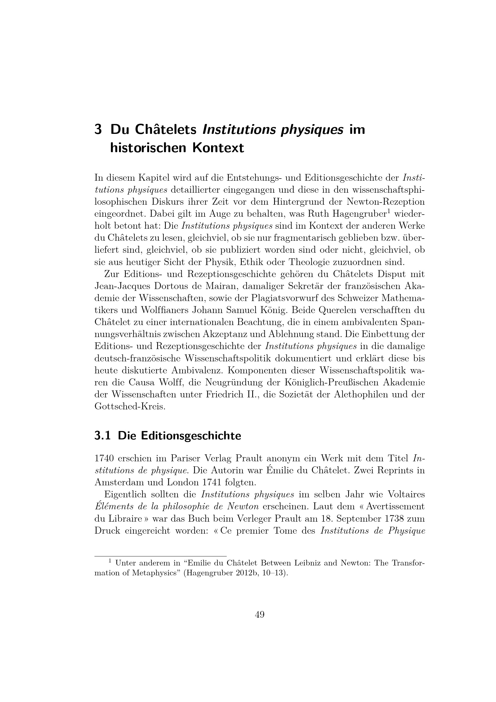 Du Châtelets Institutions physiques im historischen Kontext