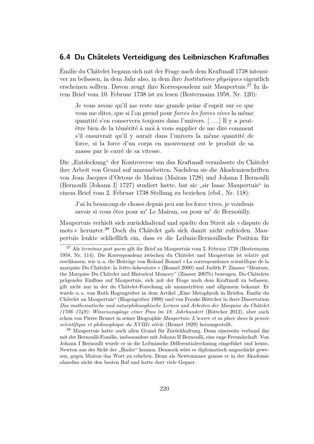 Du Châtelets Verteidigung des Leibnizschen Kraftmaßes