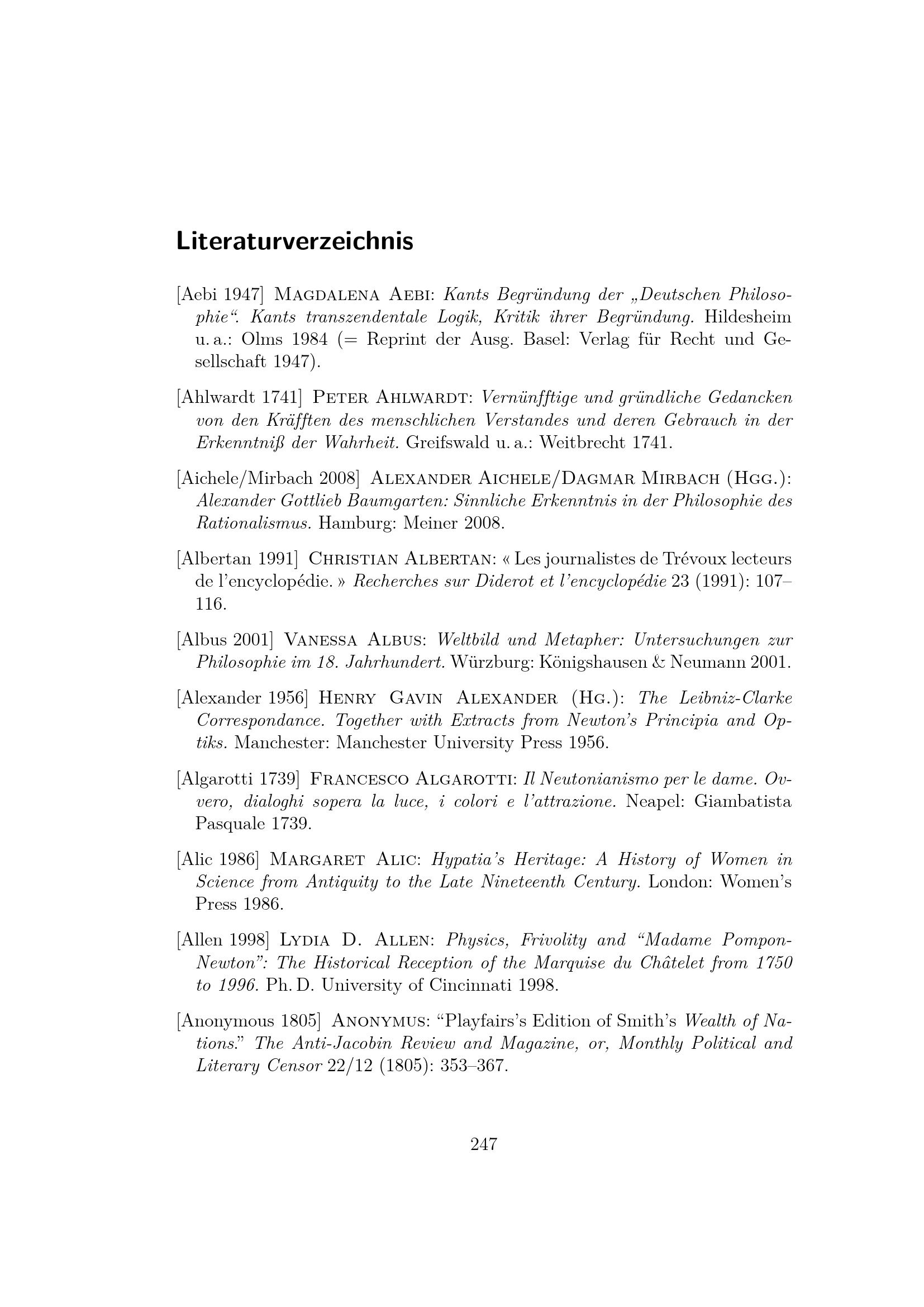 Émilie du Châtelets Institutions physiques : Über die Grundlagen der Physik