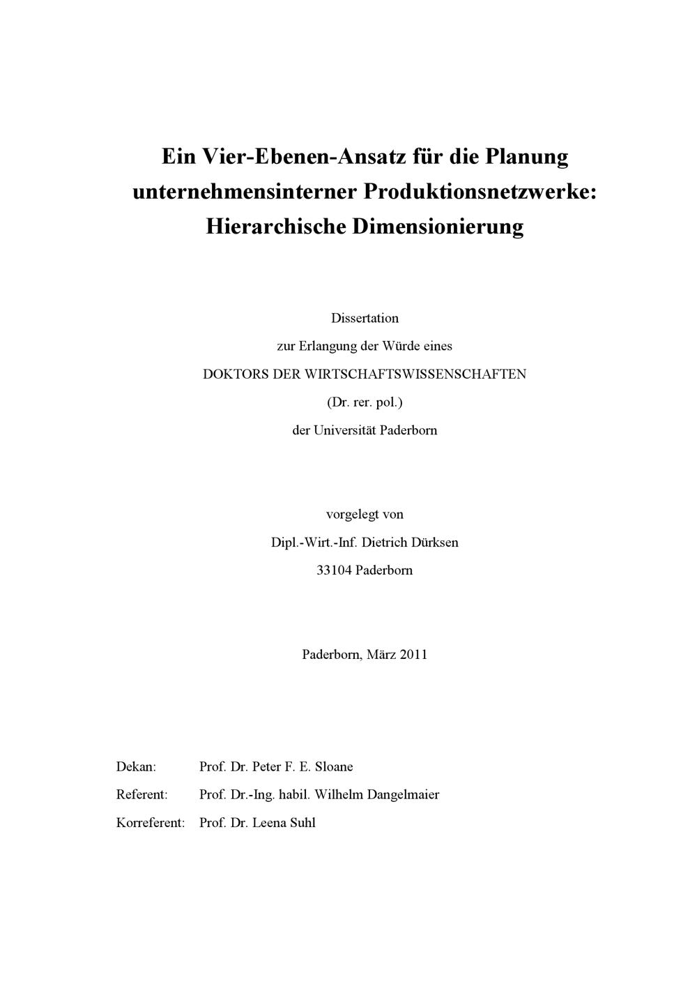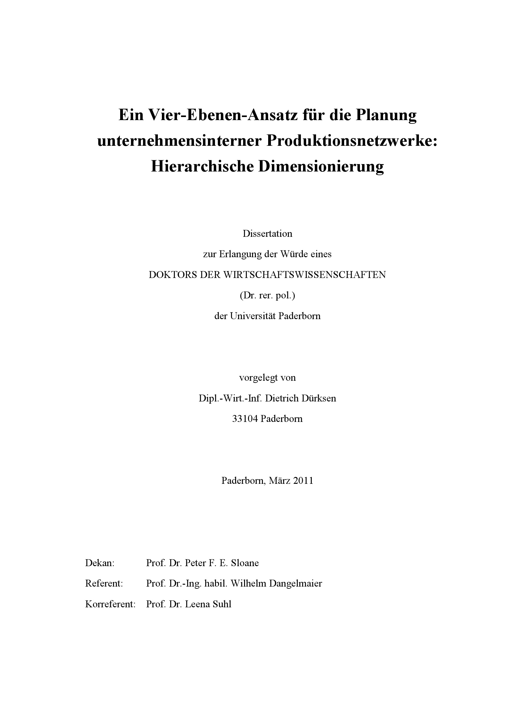 Ein Vier-Ebenen-Ansatz für die Planung unternehmensinterner Produktionsnetzwerke : hierarchische Dimensionierung