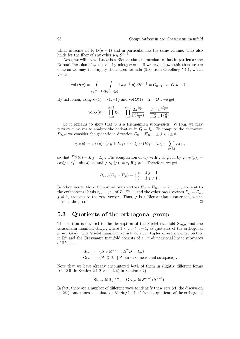 Computations in the Grassmann manifold