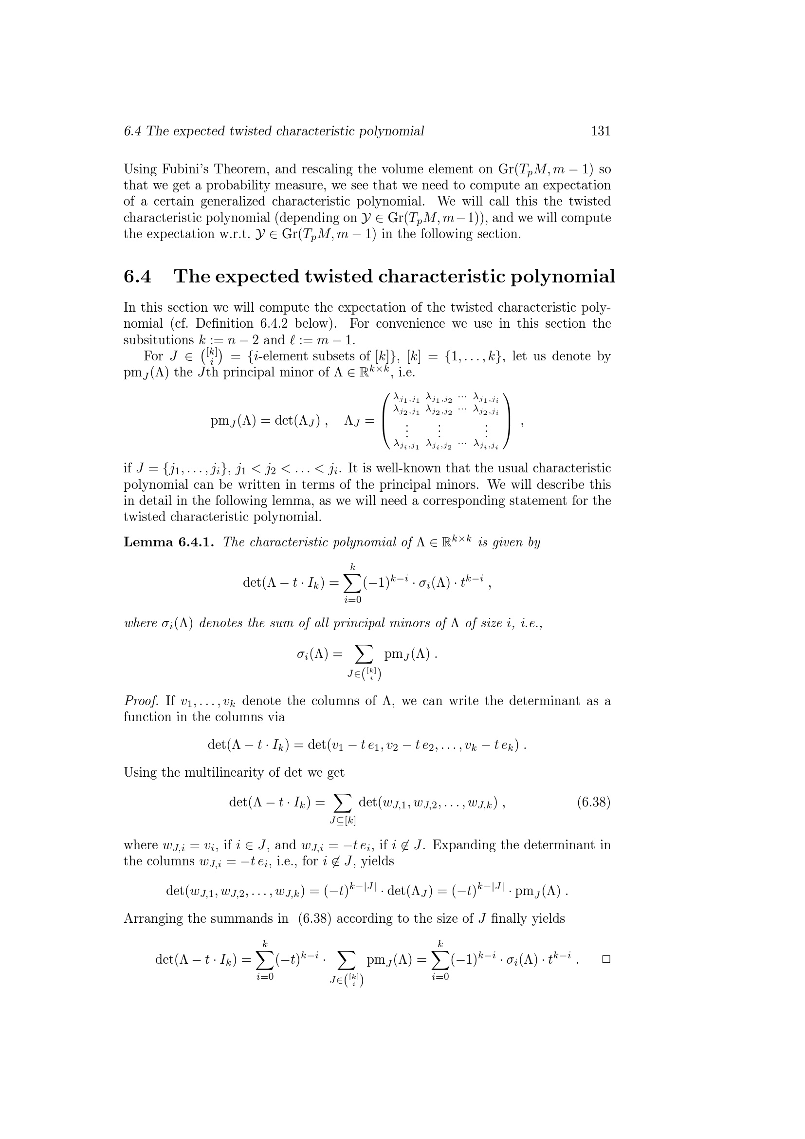 The expected twisted characteristic polynomial