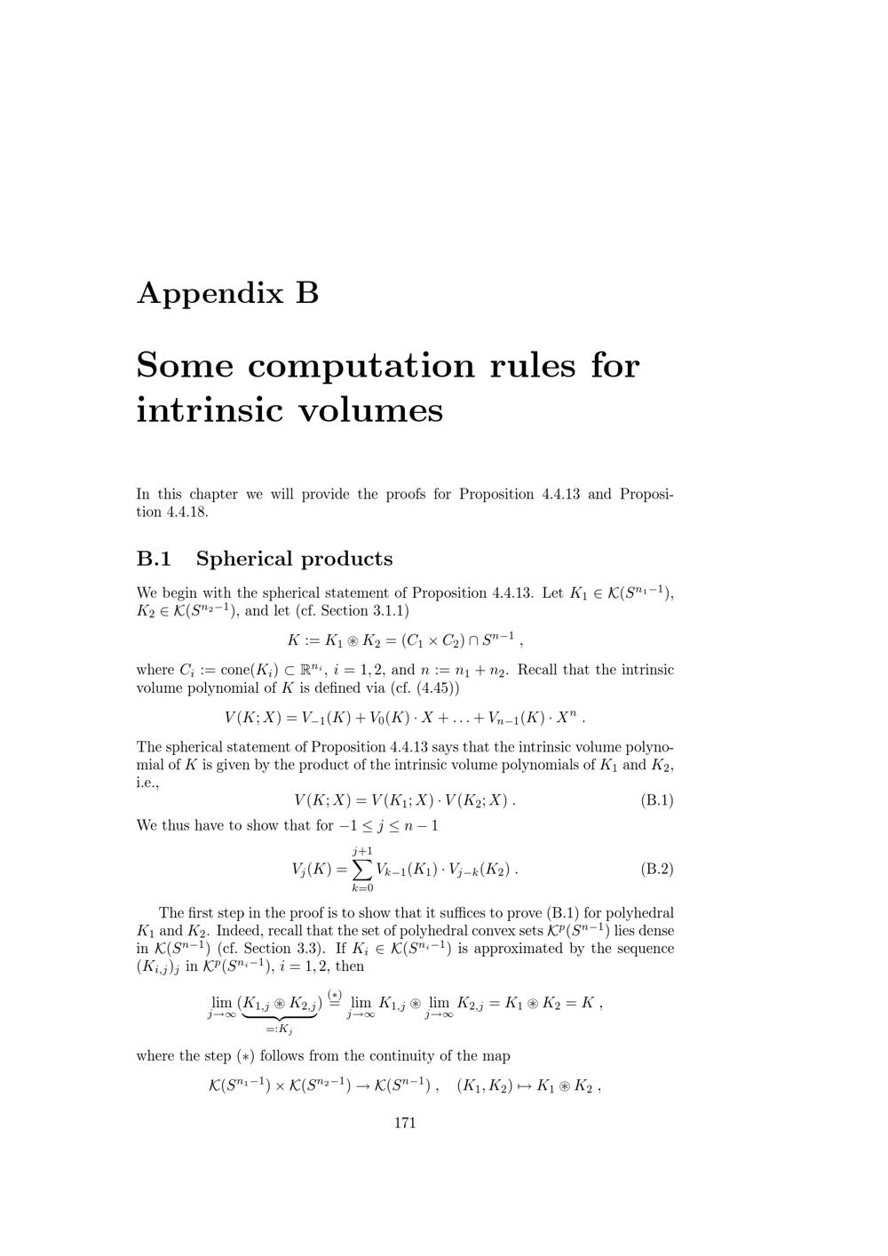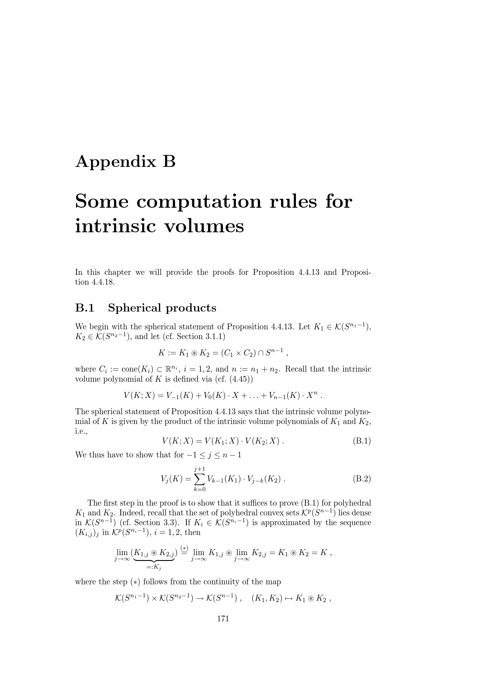 Some computation rules for intrinsic volumes