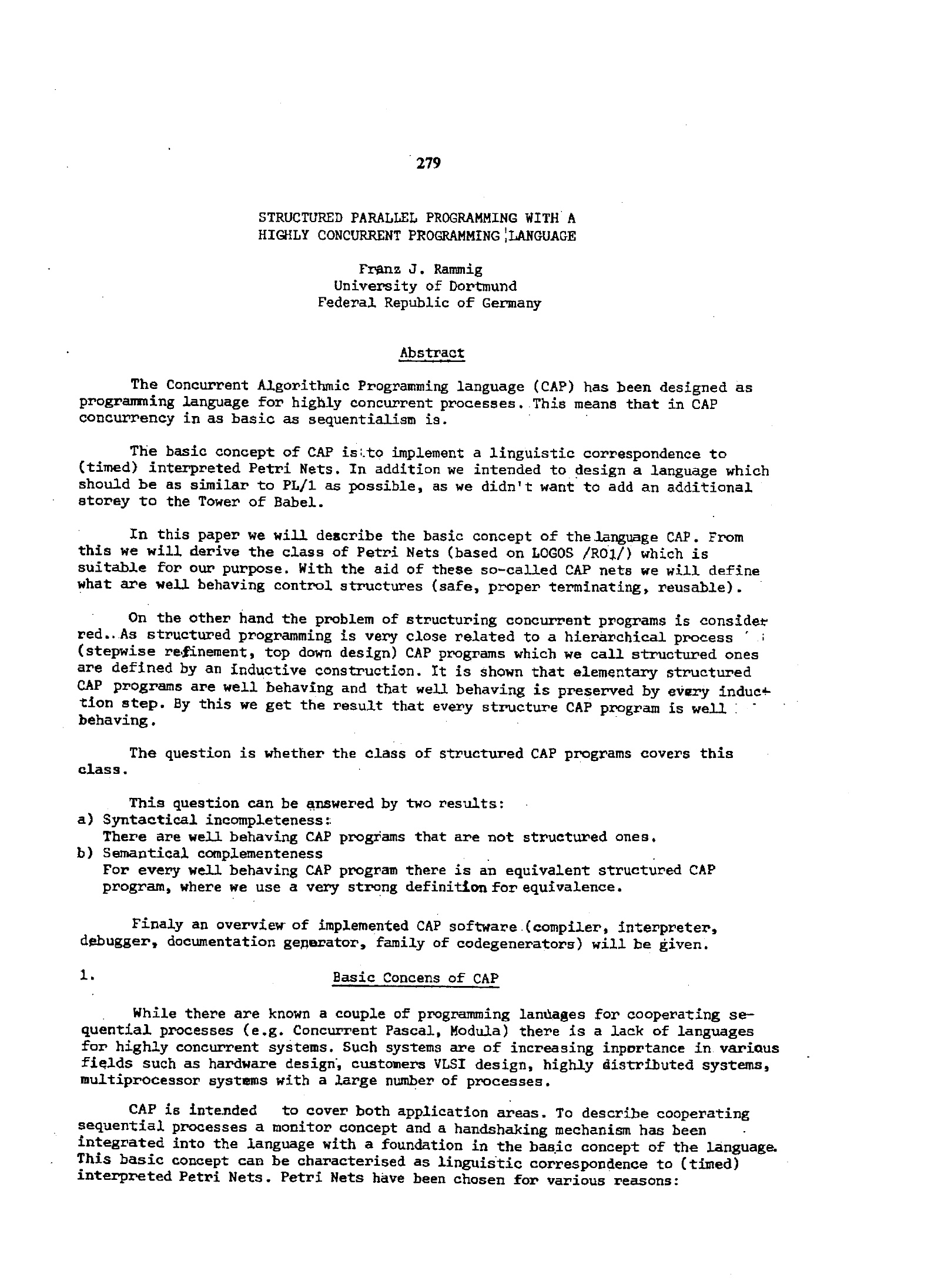 Structured parallel programming with a highly concurrent programming language