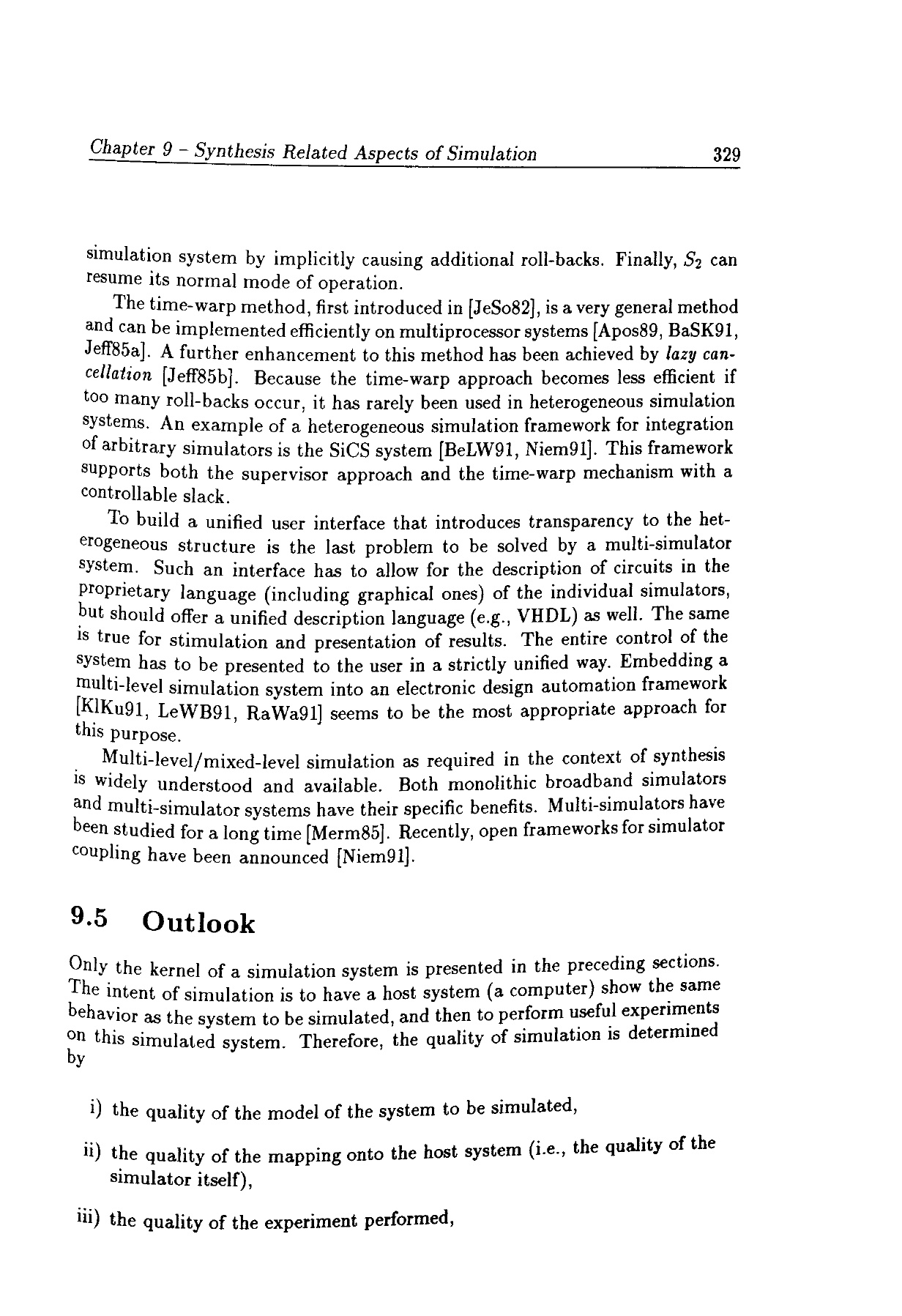 Synthesis related aspects of simulation
