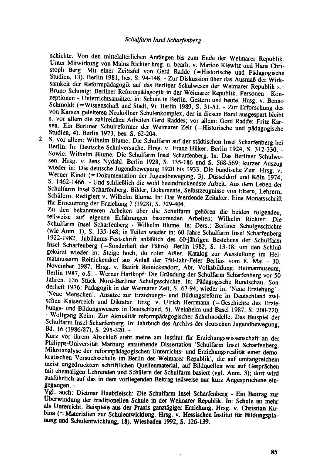 Schulfarm Insel Scharfenberg : reformpädagogische Versuchsschularbeit im Berlin der Weimarer Republik