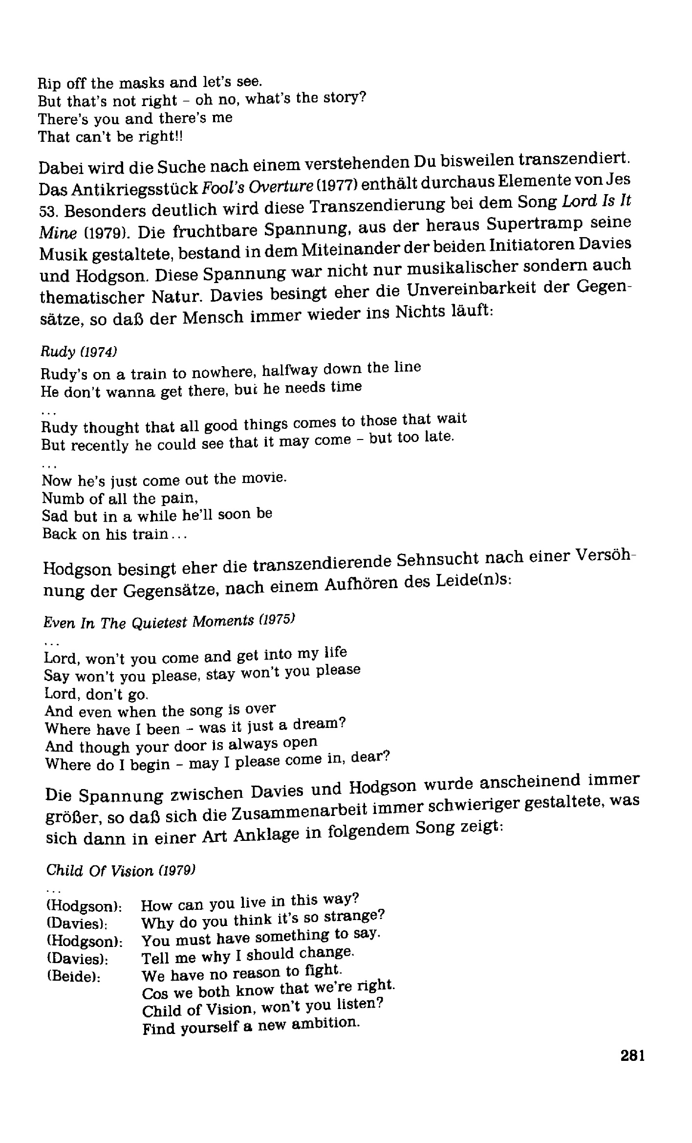 weg oder Weg? : Gedanken bei der Beschäftigung mit der Gruppe Supertramp