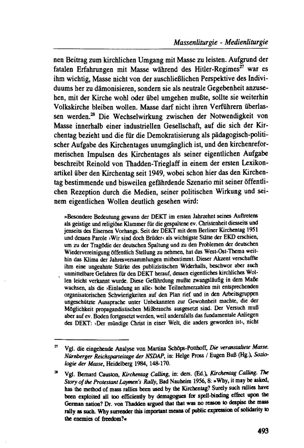 Massenliturgie - Medienliturgie : hermeneutische Überlegungen zu den Schlußversammlungen des Deutschen Evangelischen Kirchentages