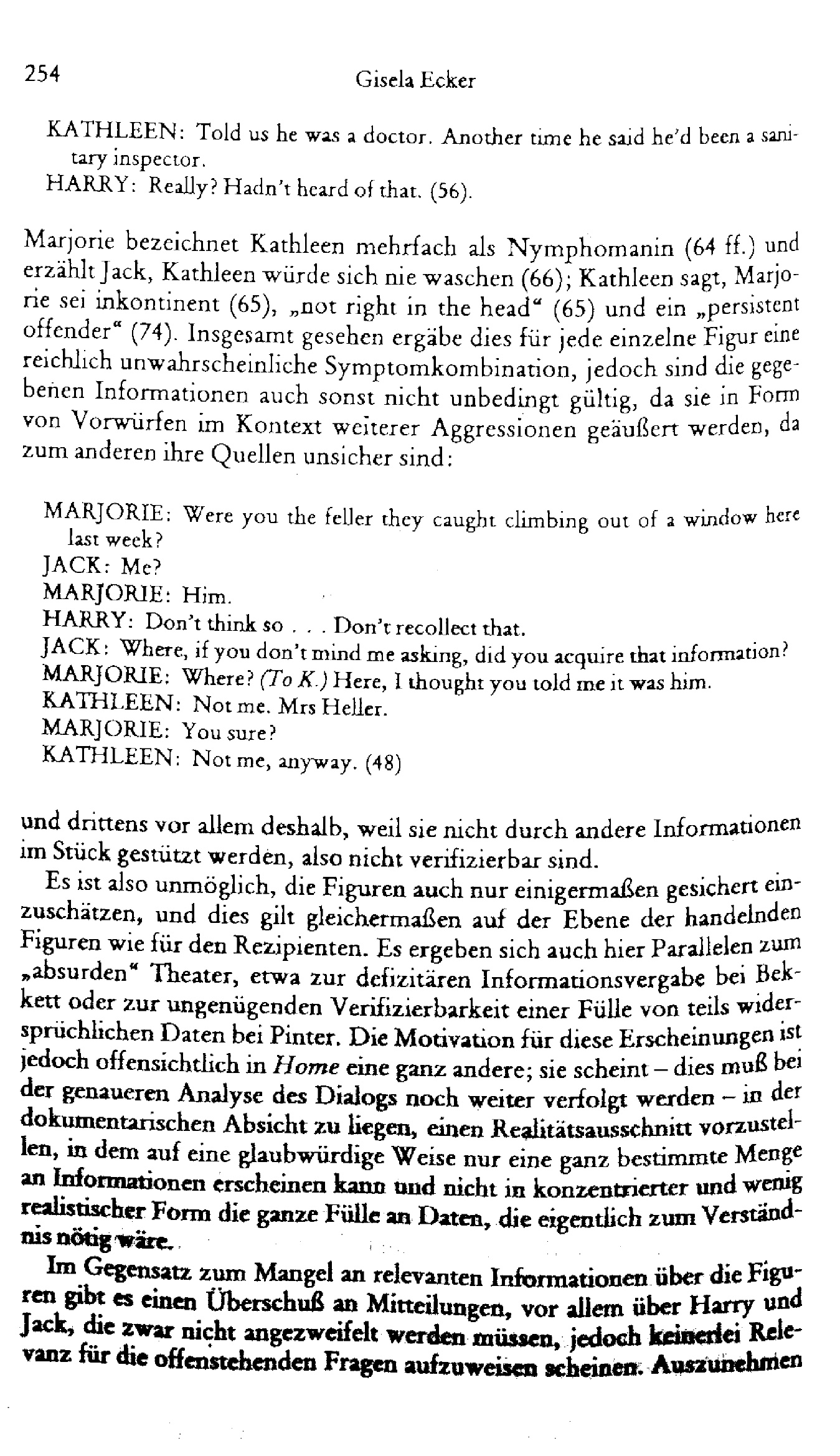 David Storey, Home : "Schönes Wetter heute" oder Strukturen des 'small talk'