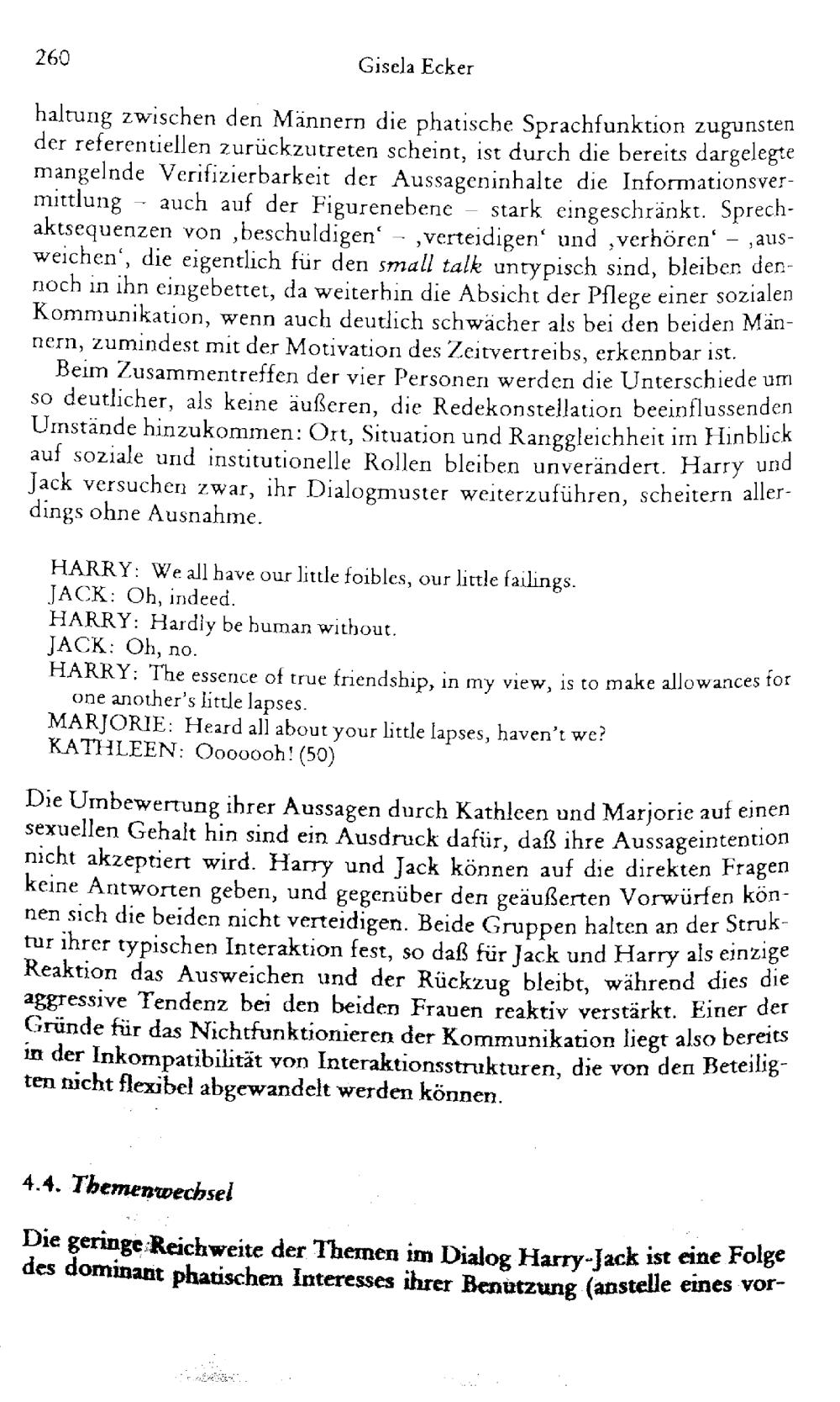 David Storey, Home : "Schönes Wetter heute" oder Strukturen des 'small talk'