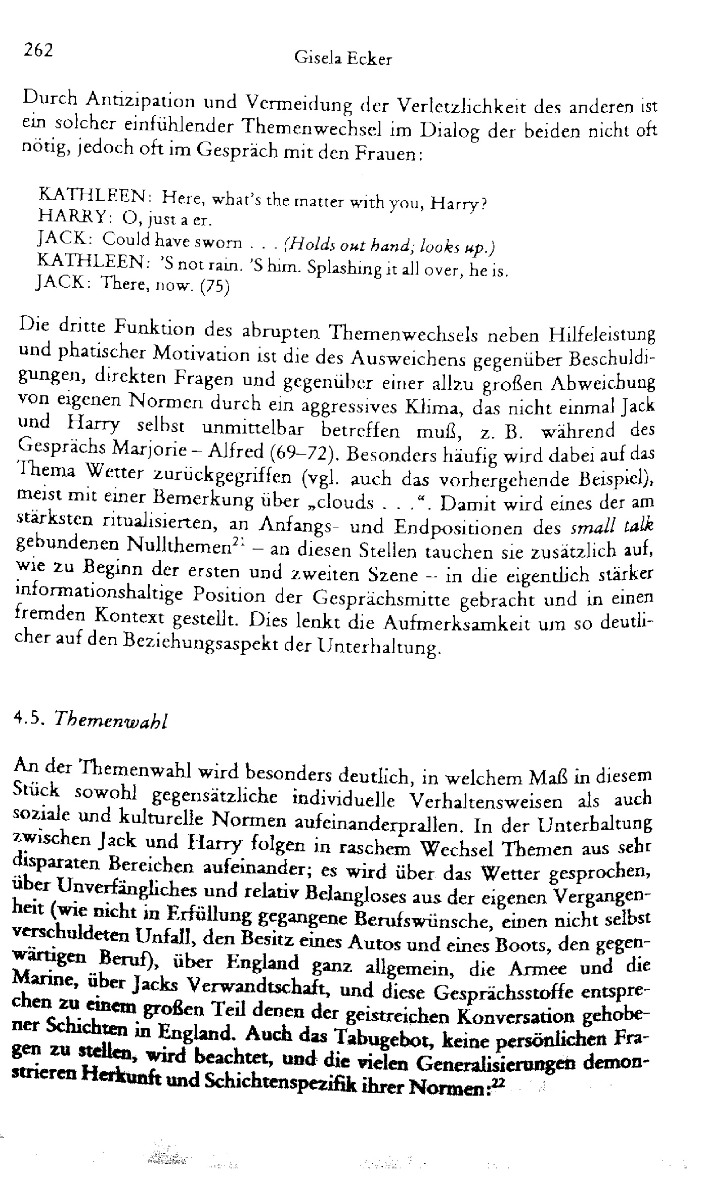 David Storey, Home : "Schönes Wetter heute" oder Strukturen des 'small talk'