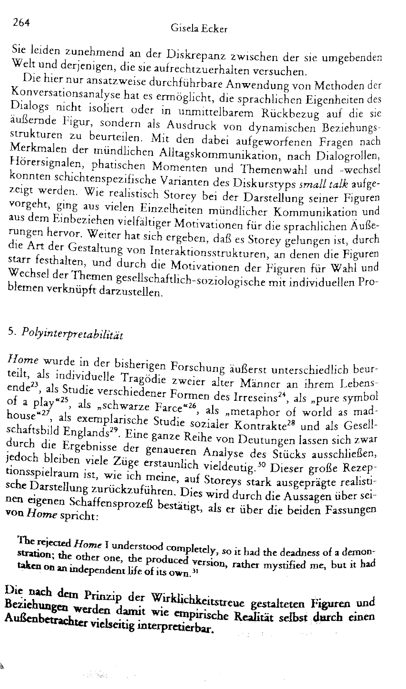 David Storey, Home : "Schönes Wetter heute" oder Strukturen des 'small talk'