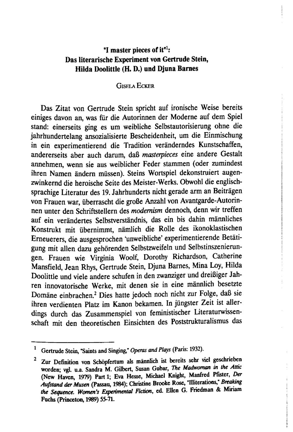 'I master pieces of it' - Das literarische Experiment von Gertrude Stein, Hilda Doolittle[...]