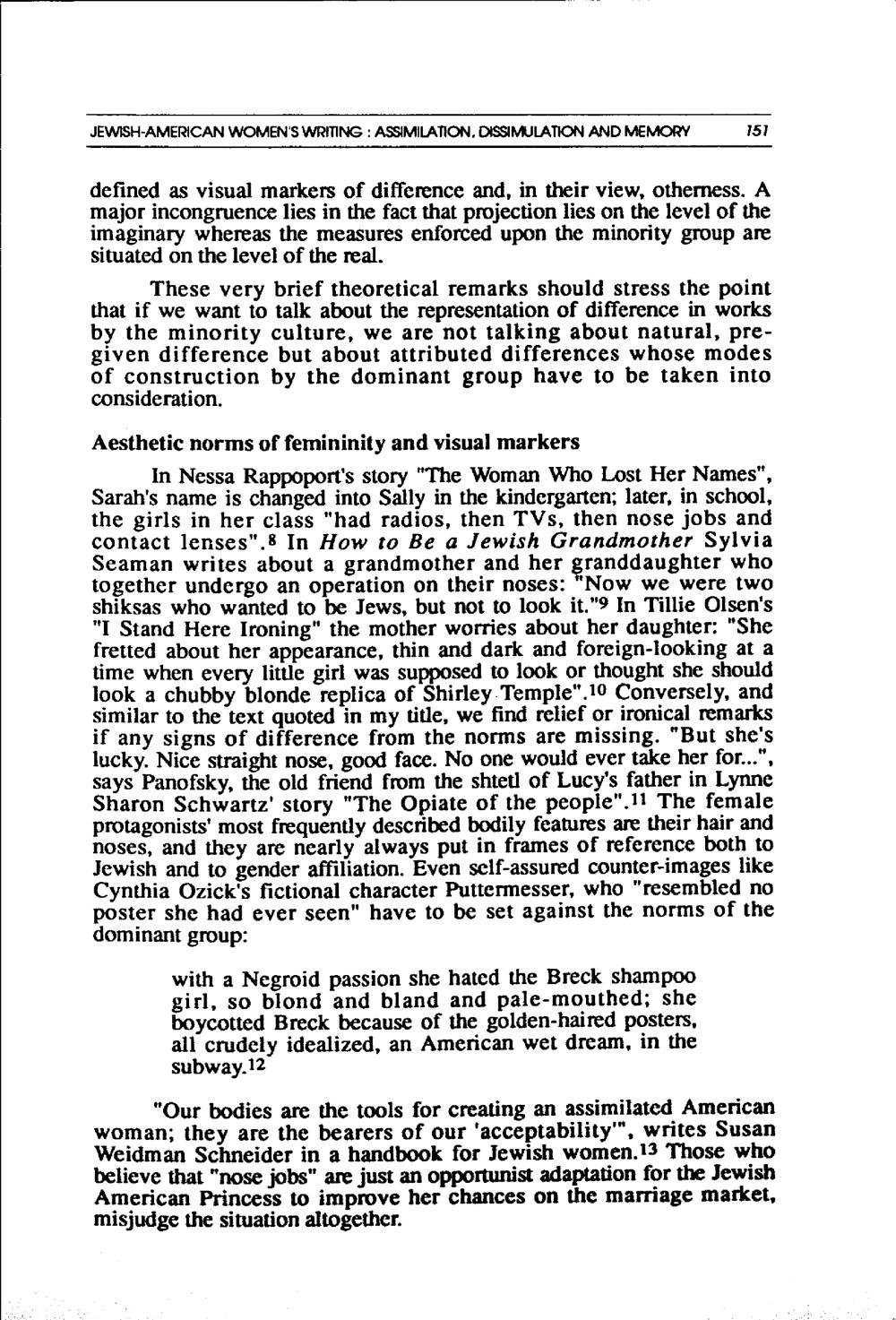 "No one could have told her race" : assimilation, dissimulation and memory in Jewish-American women's texts
