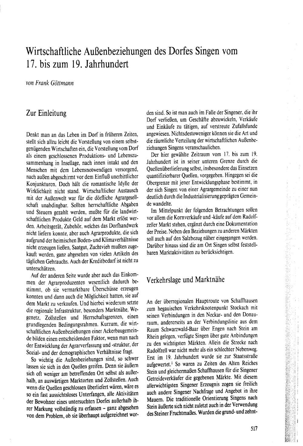 Wirtschaftliche Außenbeziehungen des Dorfes Singen vom 17. bis zum 19. Jahrhundert