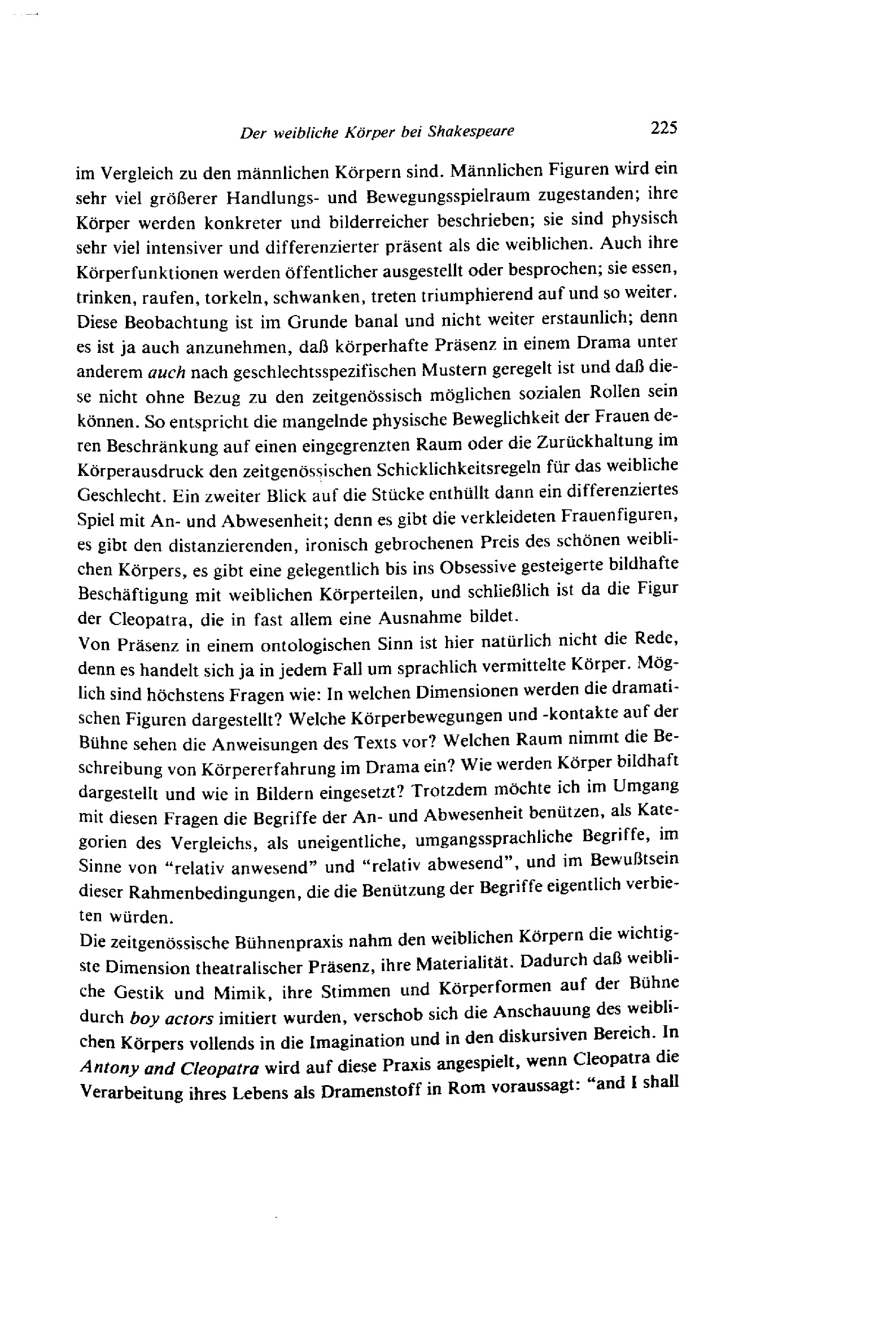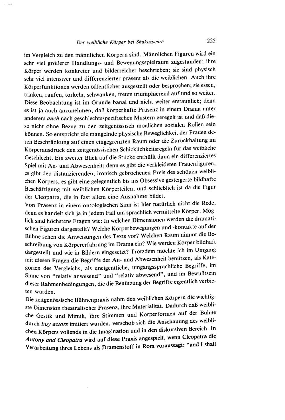 Der weibliche Körper bei Shakespeare im Spiel von An- und Abwesenheit