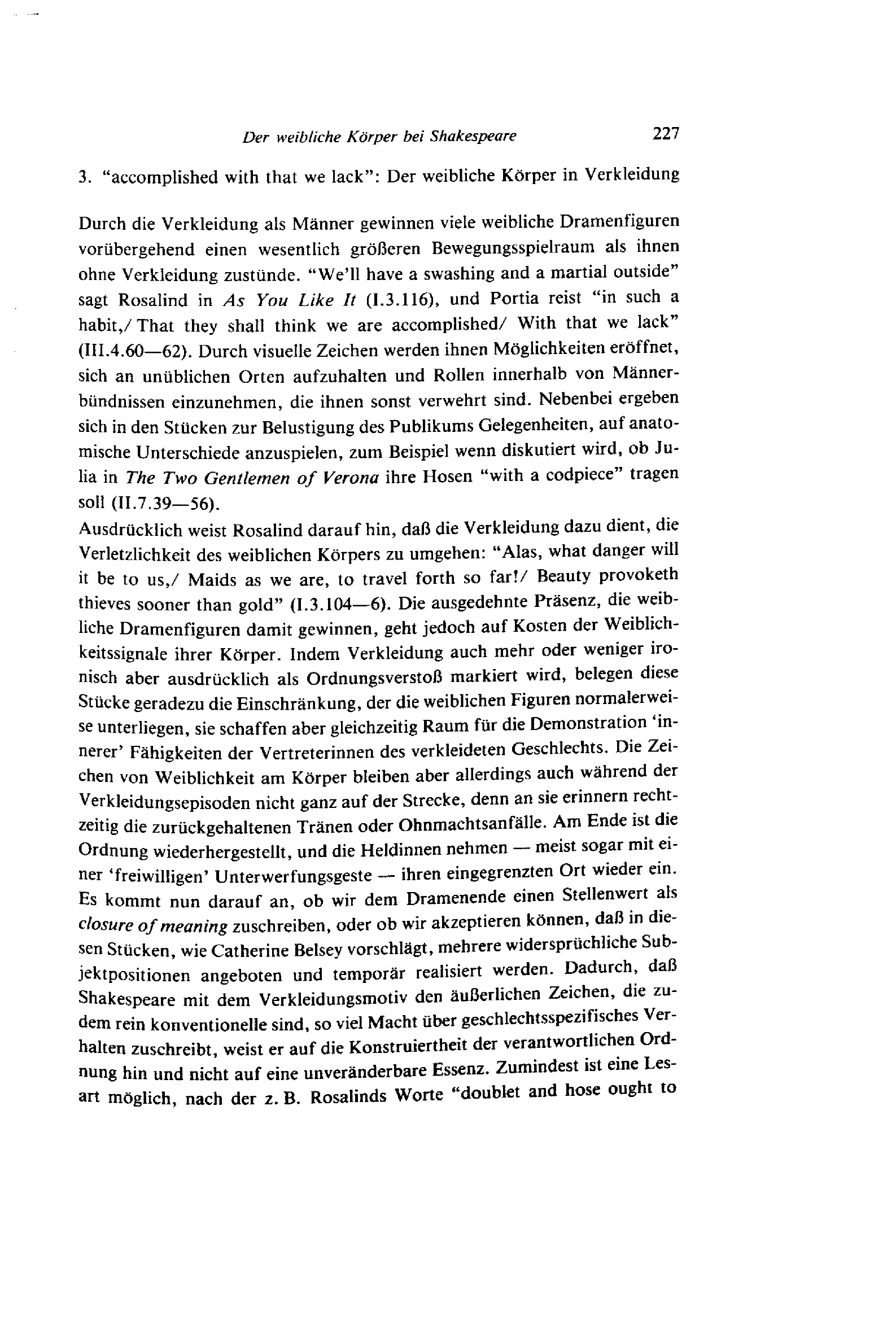 Der weibliche Körper bei Shakespeare im Spiel von An- und Abwesenheit