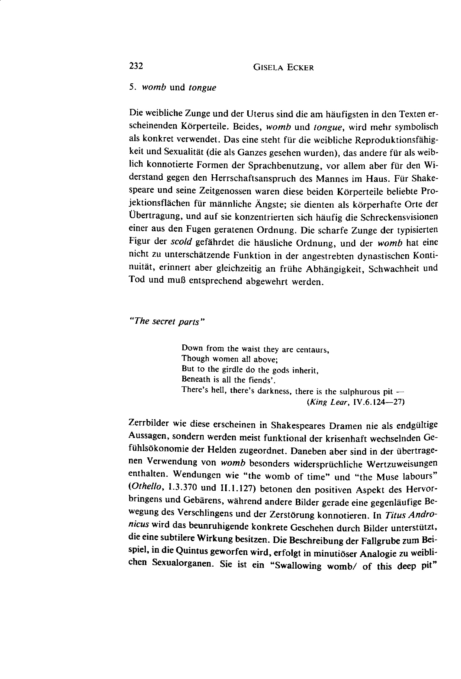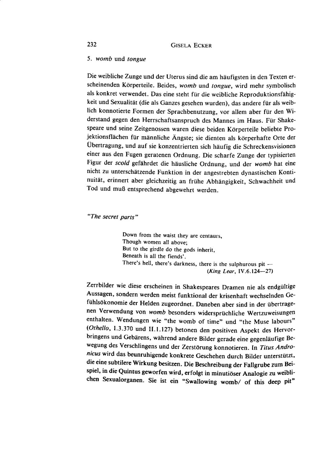 Der weibliche Körper bei Shakespeare im Spiel von An- und Abwesenheit