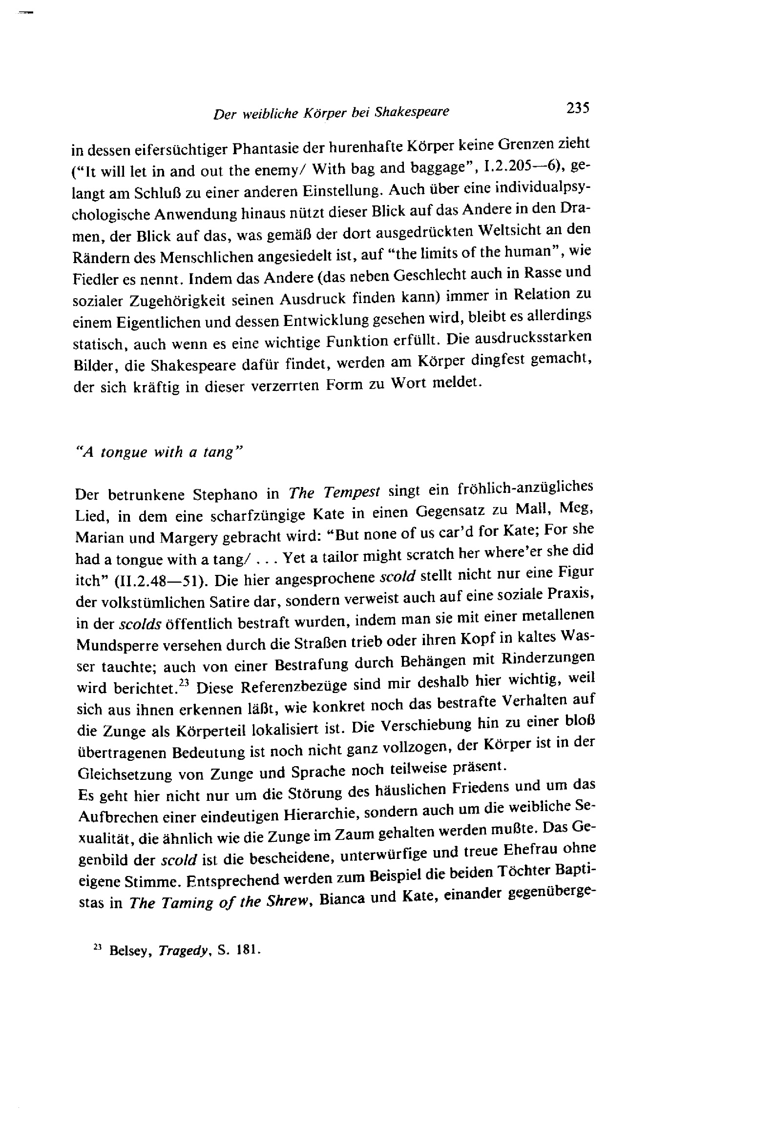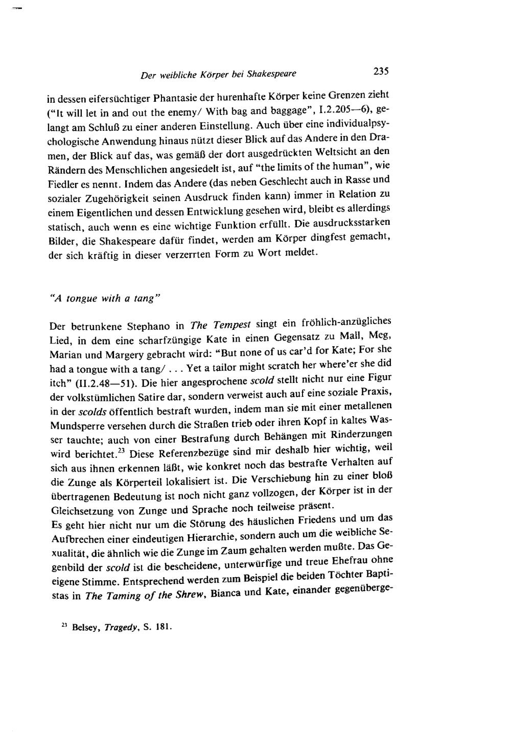 Der weibliche Körper bei Shakespeare im Spiel von An- und Abwesenheit