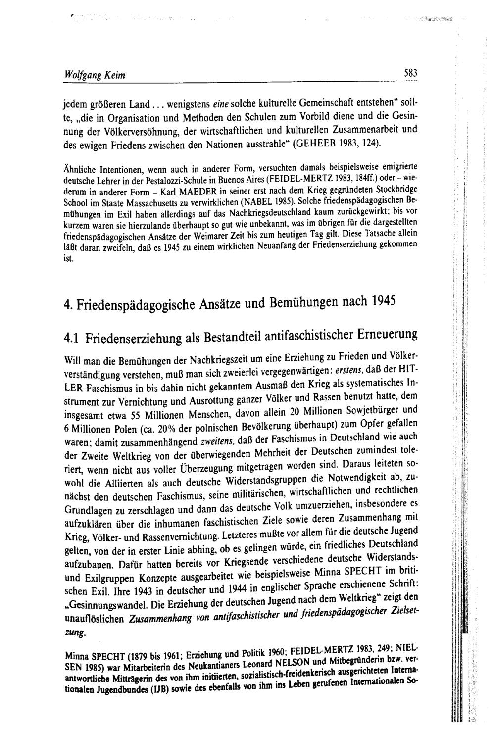 Die Geschichte friedenspädagogischer Diskussionen und Bemühungen