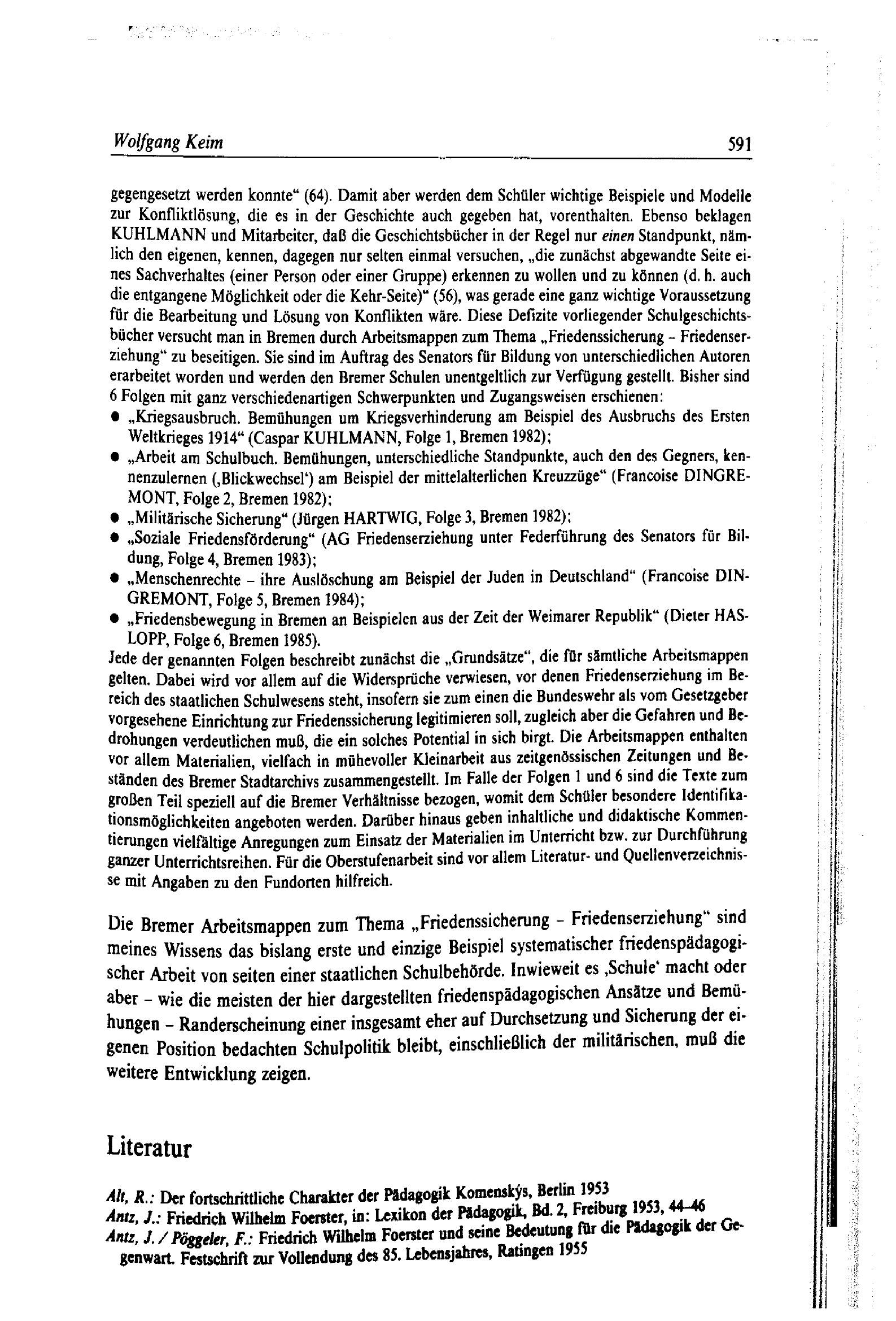 Die Geschichte friedenspädagogischer Diskussionen und Bemühungen