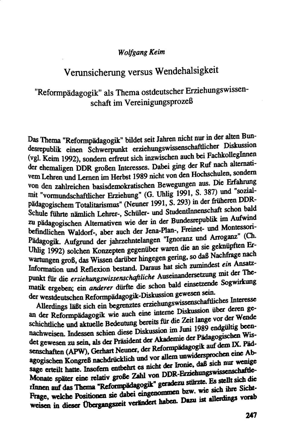 Verunsicherung versus Wendehalsigkeit : "Reformpädagogik" als Thema ostdeutscher Erziehungswissenschaft im Vereinigungsprozeß