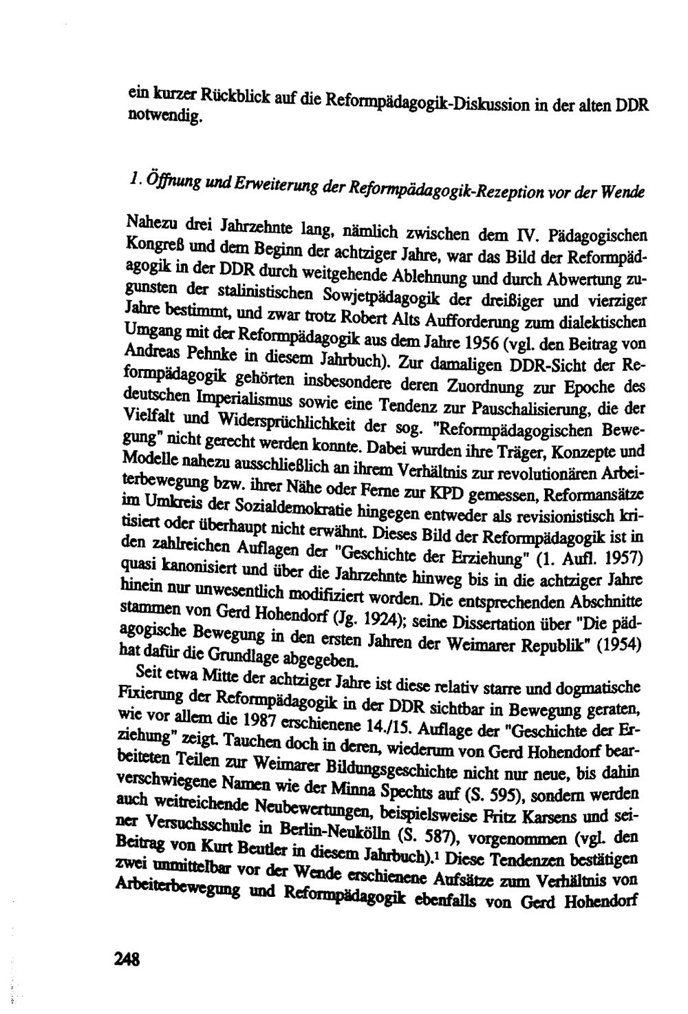 Verunsicherung versus Wendehalsigkeit : "Reformpädagogik" als Thema ostdeutscher Erziehungswissenschaft im Vereinigungsprozeß