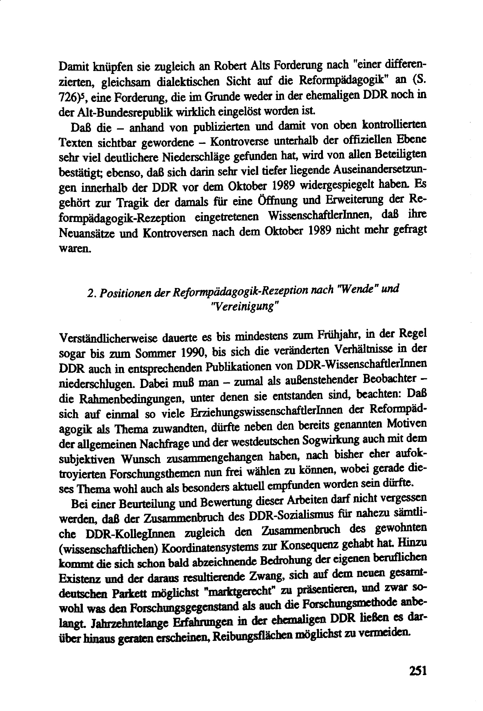 Verunsicherung versus Wendehalsigkeit : "Reformpädagogik" als Thema ostdeutscher Erziehungswissenschaft im Vereinigungsprozeß