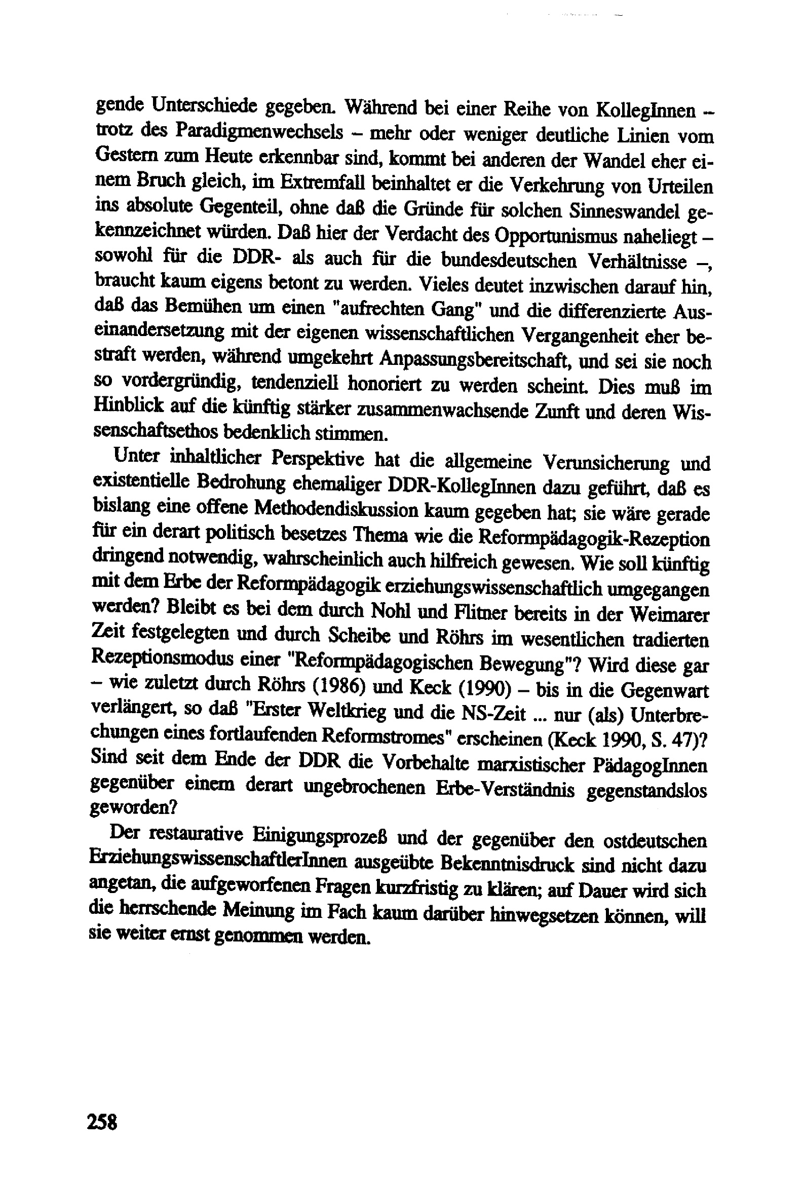 Verunsicherung versus Wendehalsigkeit : "Reformpädagogik" als Thema ostdeutscher Erziehungswissenschaft im Vereinigungsprozeß